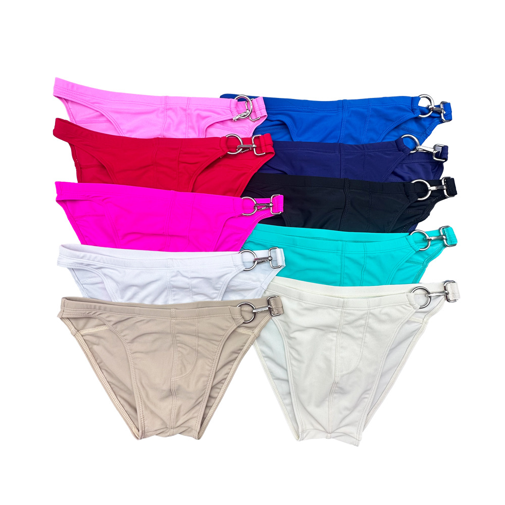 JESSBORN男士单边金属扣三角泳裤锦纶纯色时尚温泉泳池游泳裤欧美跨境