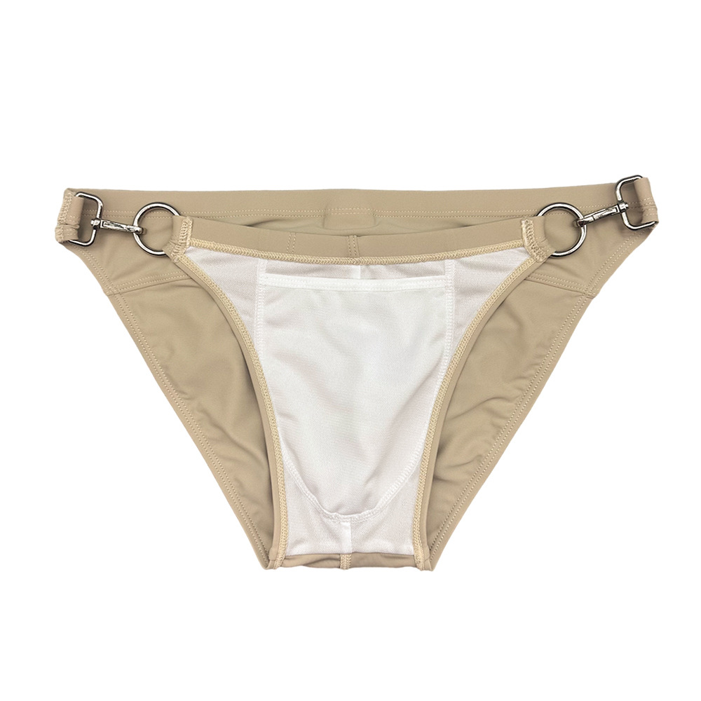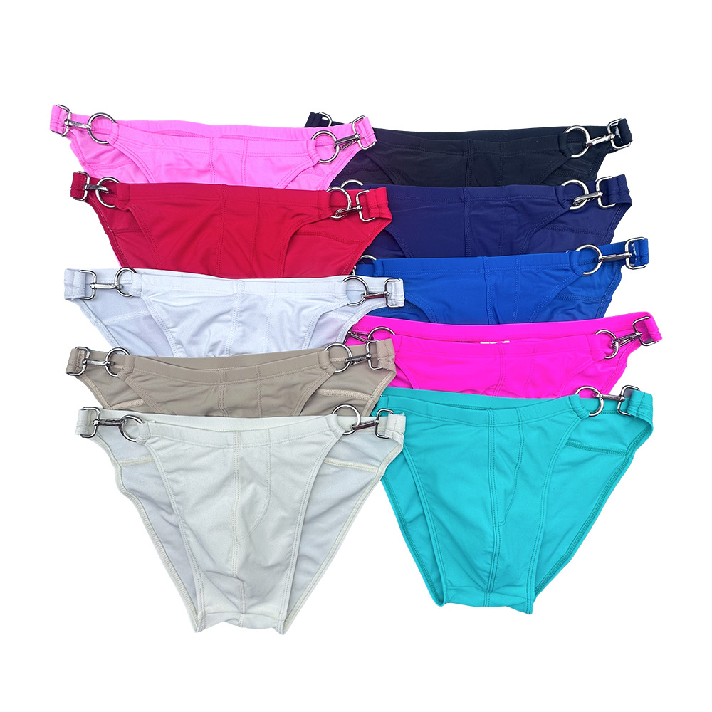 JESSBORN 양면 금속 버클 남성용 사이드 슬릿 삼각형 수영복 솔리드 컬러 나일론 온천 로우 웨이스트 섹시한 수영복