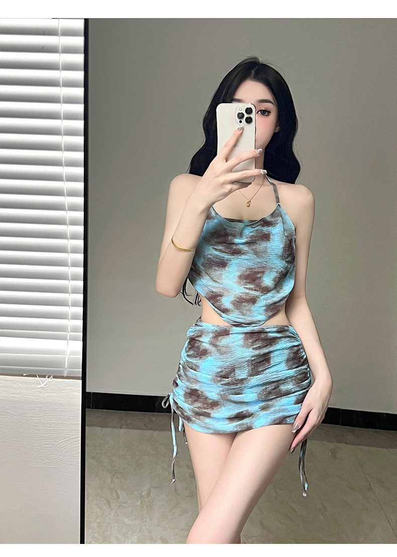 2024 국경 간 비키니 섹시 순수한 바람 작은 가슴 모여 배를 덮고있는 휴가 온천 수영복 3 피스 수영복스토어 가기