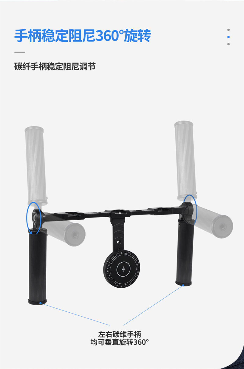 B. 360º旋转碳纤手柄,可根据需要调节适合的角度,方便握持摄影,减少手臂负担,让长时间低拍,跟拍稳定持久;