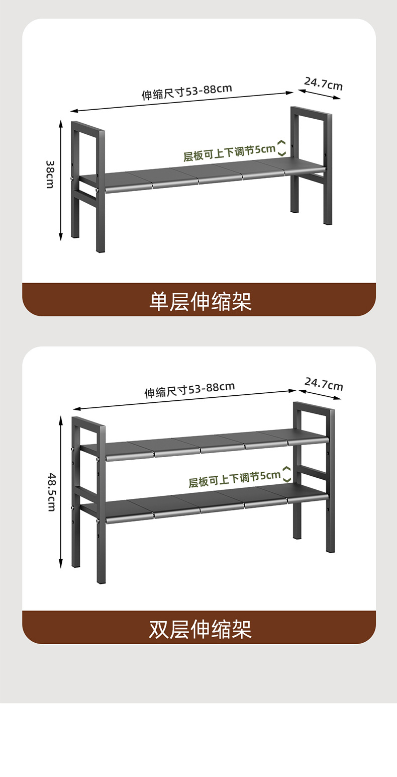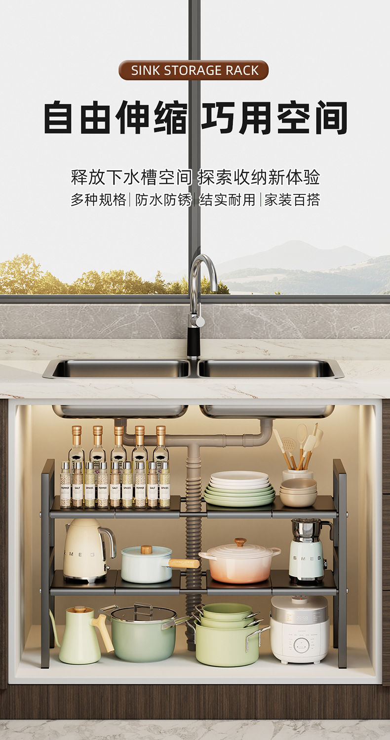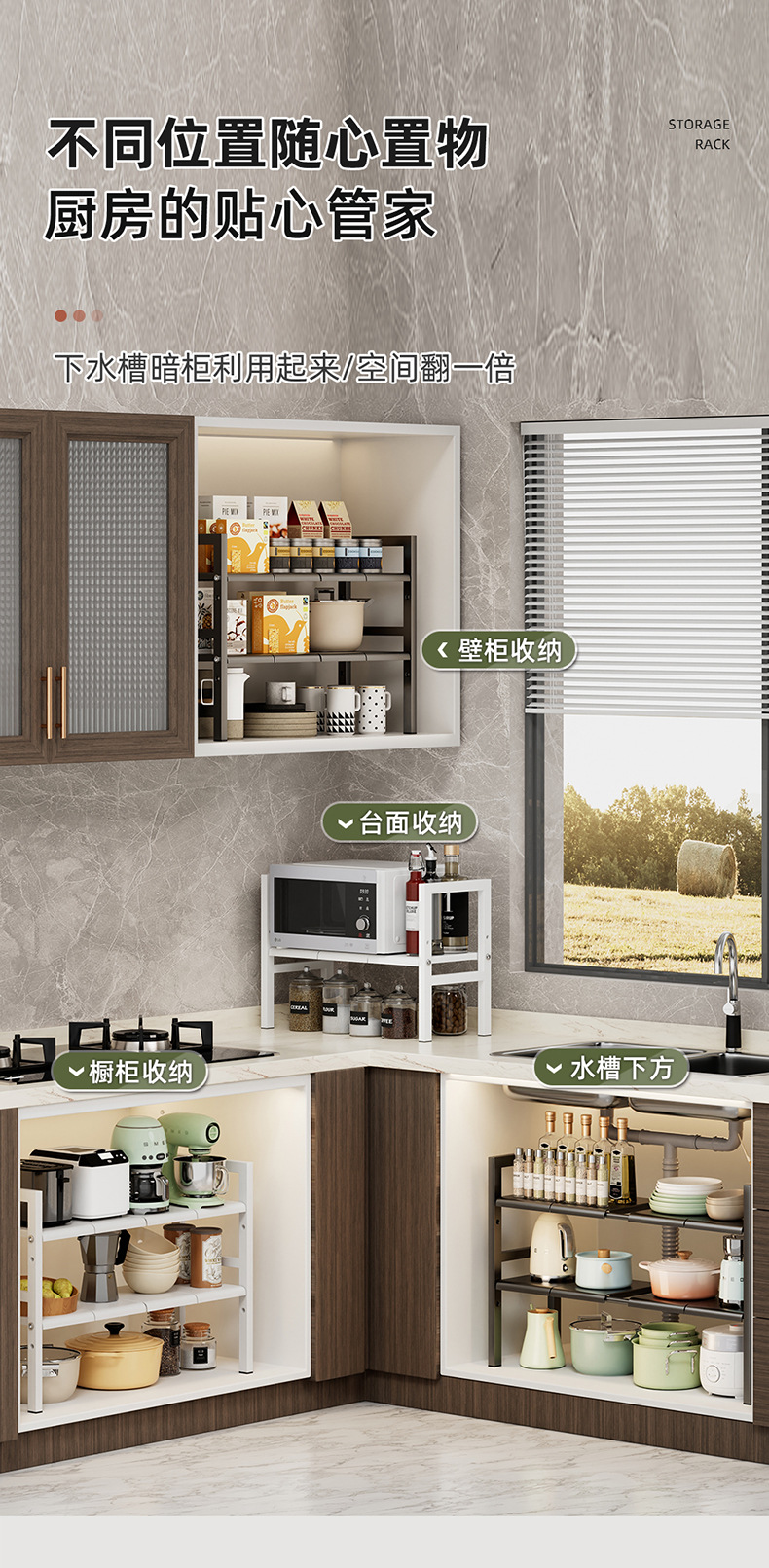 주방 싱크 스토리지 랙 카운터 탑 캐비닛 적층 랙 다목적 스토리지 랙 높이 조정 가능한 스토리지 선반