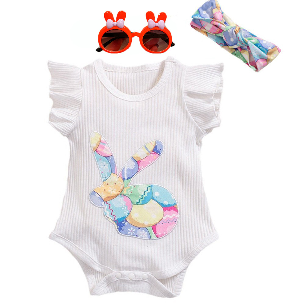 부활절 유럽과 미국의 부활절 소녀 비행 소매 장난 꾸러기 화려한 토끼 달걀 pp 바지 국경 아기 세트스토어 가기