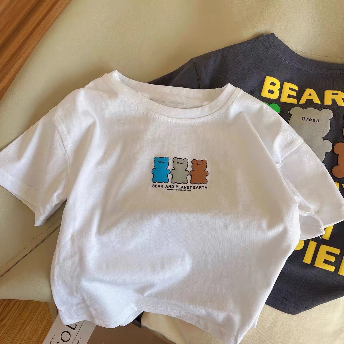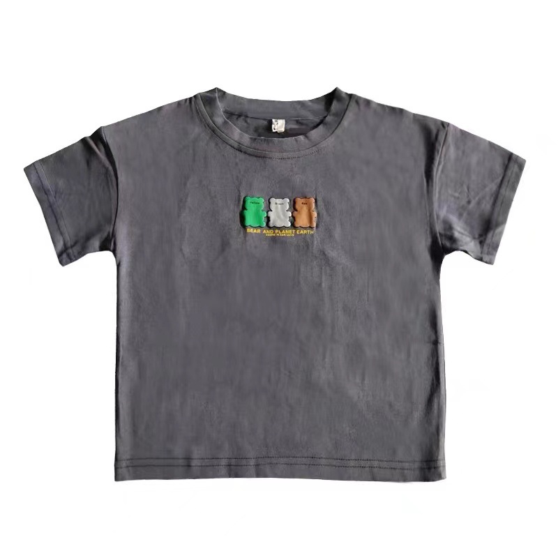 100% 면화 어린이 티셔츠 귀여운 귀여운 귀여운 아기 만화 짧은 소매 2024 여름 중간 및 작은 어린이 소년 소녀 셔츠