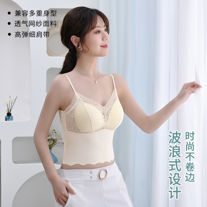 공장 도매 뷰티 백 캐미솔 여성 레이스 튜브 상단 바닥 스포츠 포장 가슴 고정 컵 스틸 링 봄과 여름스토어 가기