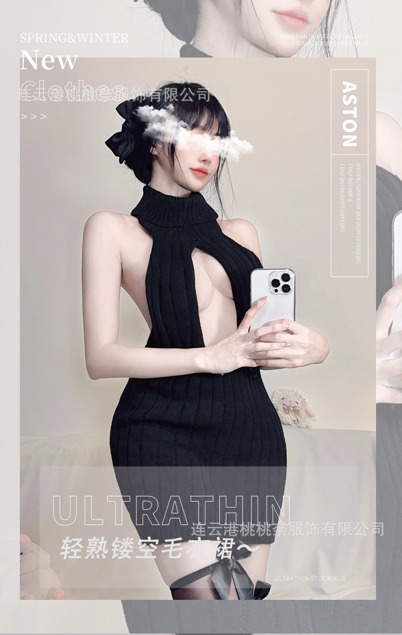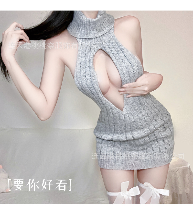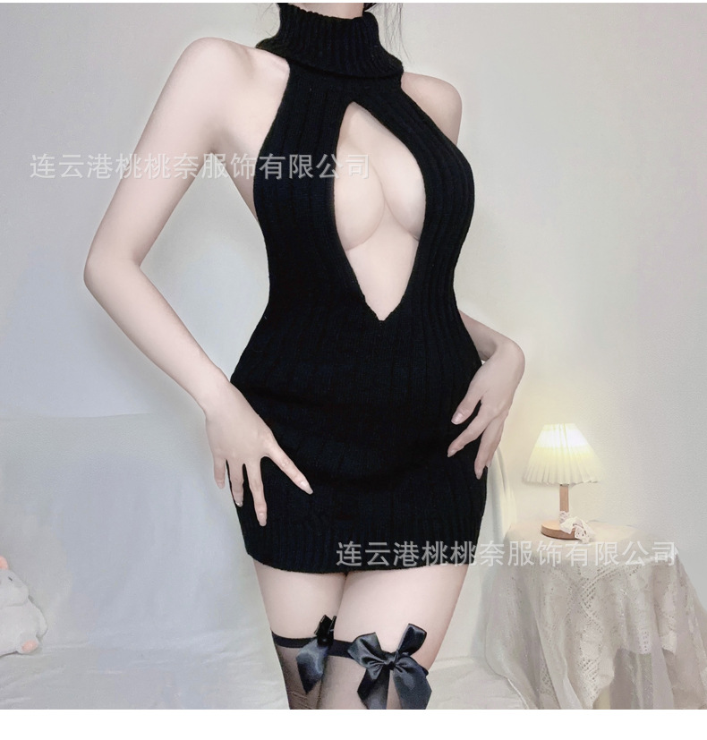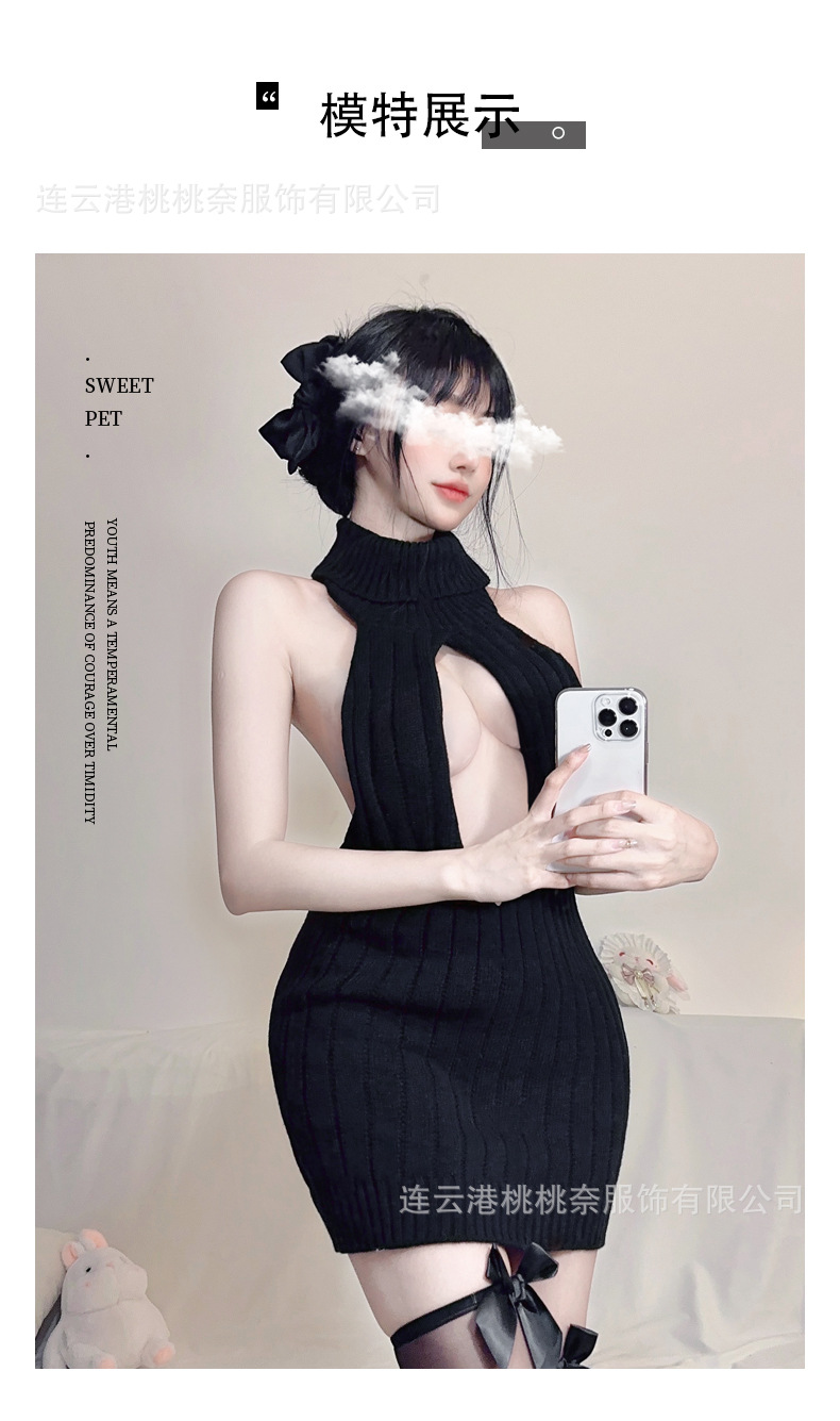 딥 V 하이 넥 할로우 스트랩 민소매 니트 스웨터 섹시한 섹시한 유니폼 백리스 로우 컷 직장 잠옷 세트스토어 가기