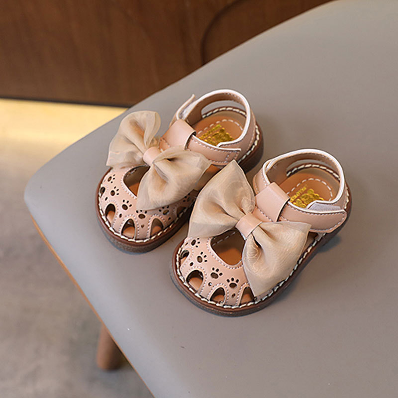 여름 새로운 어린이 샌들 여성 아기 0-1-2 년 된 구멍 신발 닫힌 발가락 활 공주 신발 원피스 배달