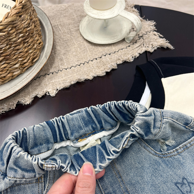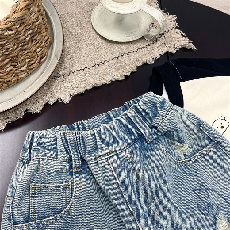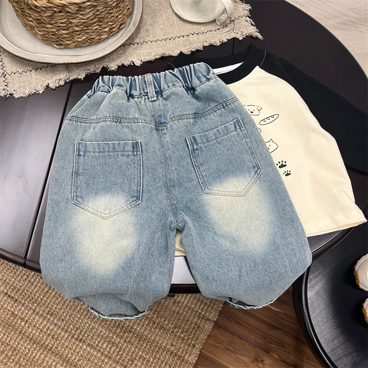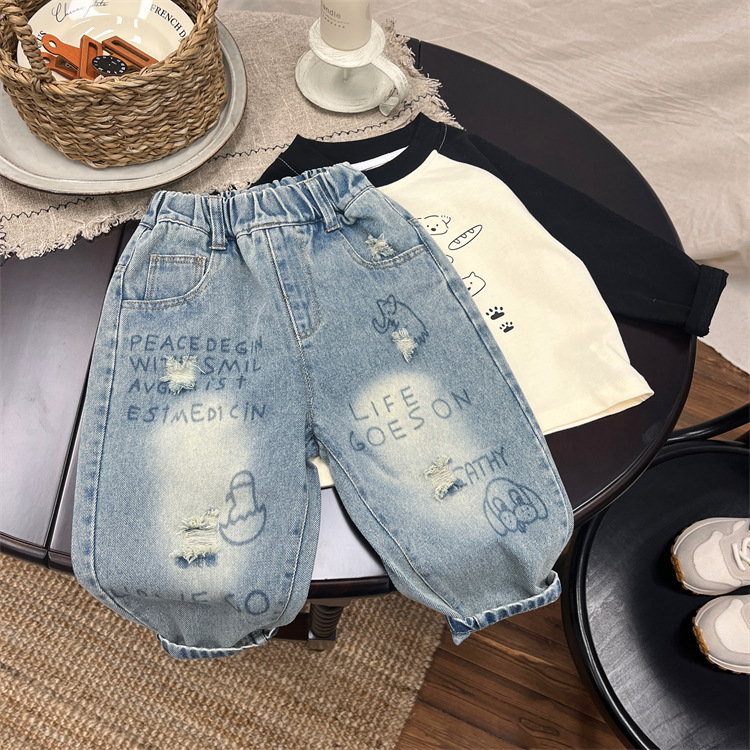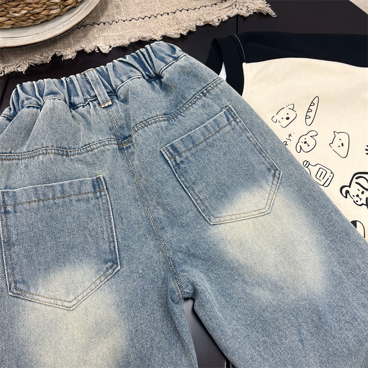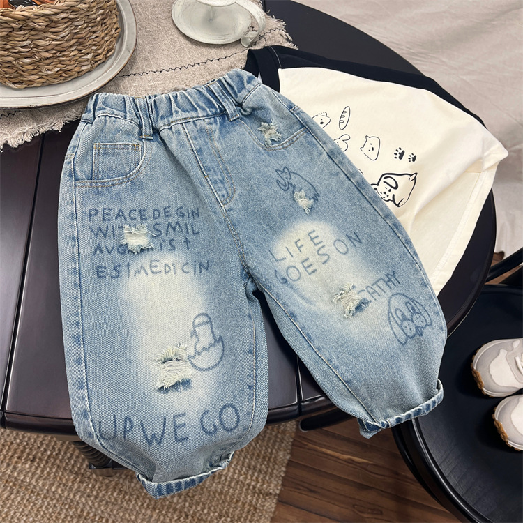 어린이용 데님 팬츠 봄 가을 유아용 패션 바지 아기 가을 의류 긴바지 한국 스타일 남아용 그래피티 스트레이트 캐주얼 팬츠스토어 가기