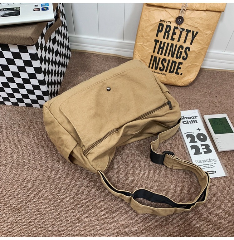 일본식 세척 캔버스 가방 게으른 스타일 드레이핑 메신저 가방 여성 예술 학교 가방 메신저 가방 캐주얼 숄더백 남성