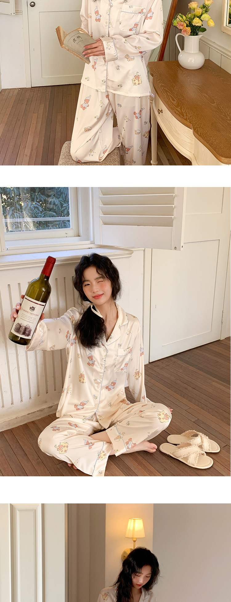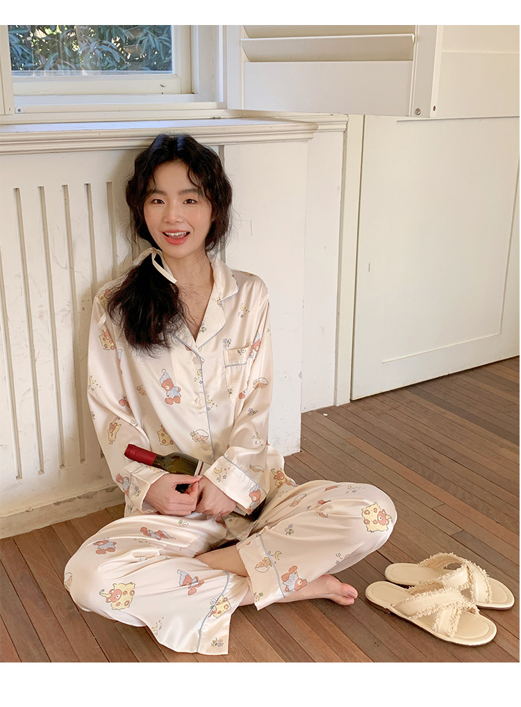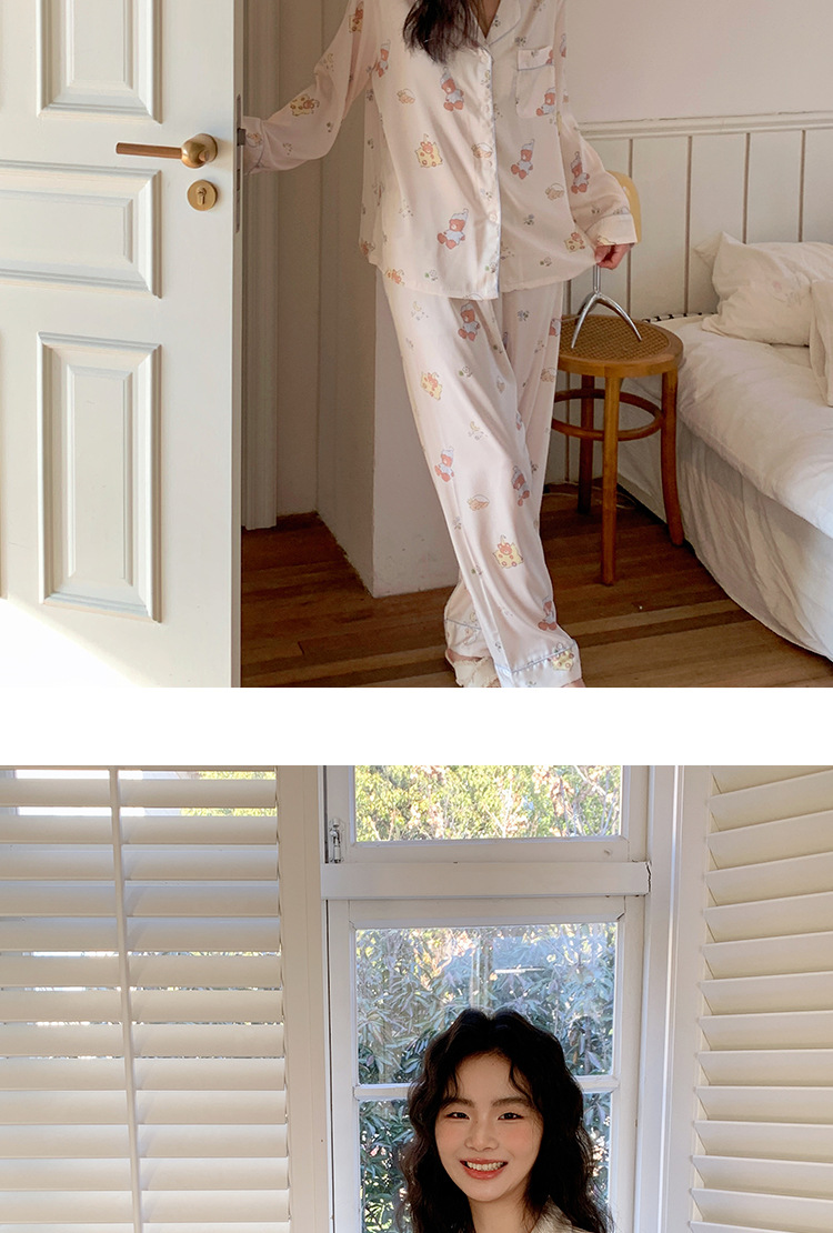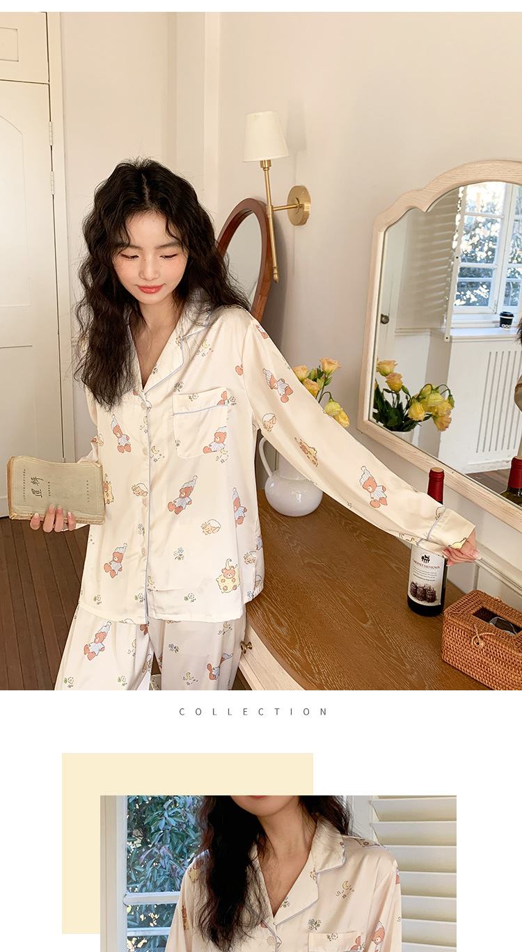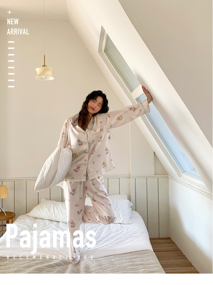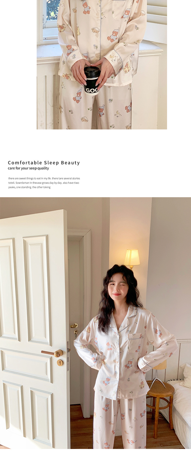 잠자는 곰 잠옷 여성의 얇은 홈 의류 세트 한국 스타일 간단한 캐주얼 어린이 만화 24 봄 새로운 스타일스토어 가기