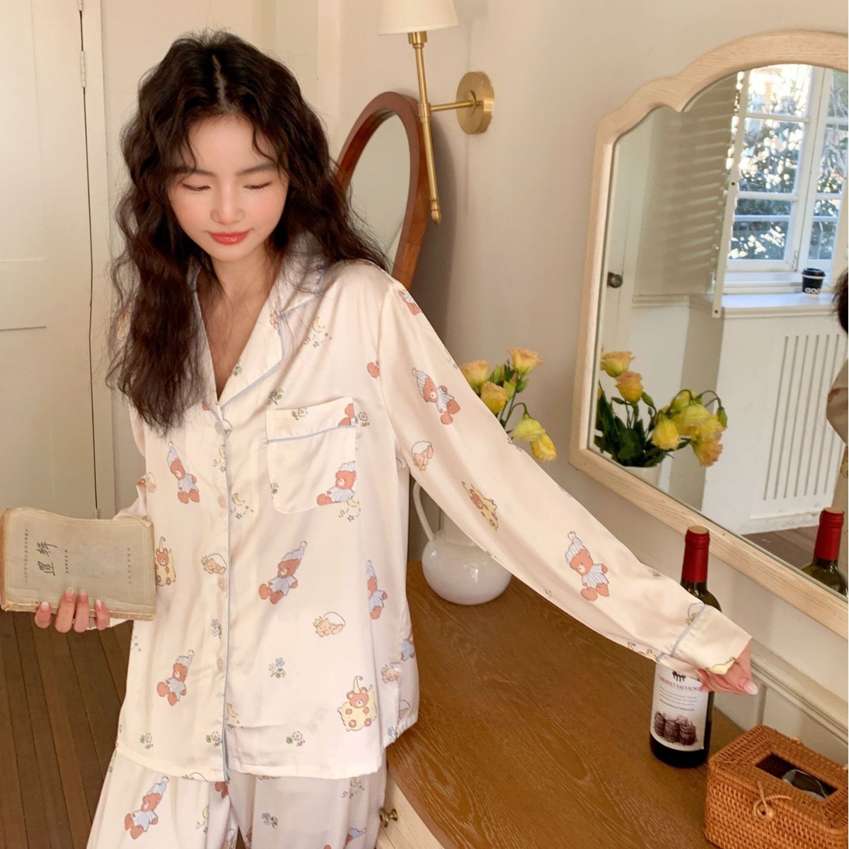 잠자는 곰 잠옷 여성의 얇은 홈 의류 세트 한국 스타일 간단한 캐주얼 어린이 만화 24 봄 새로운 스타일