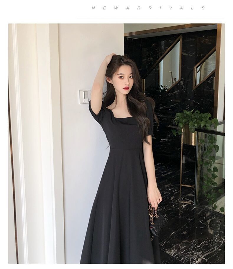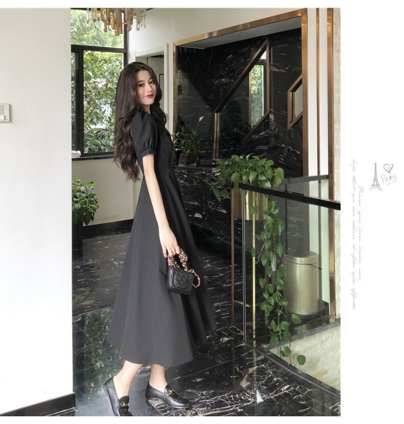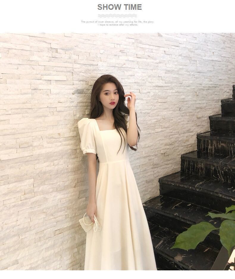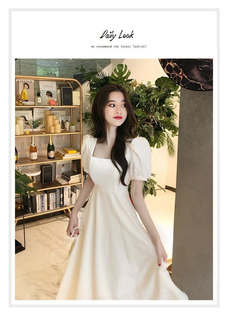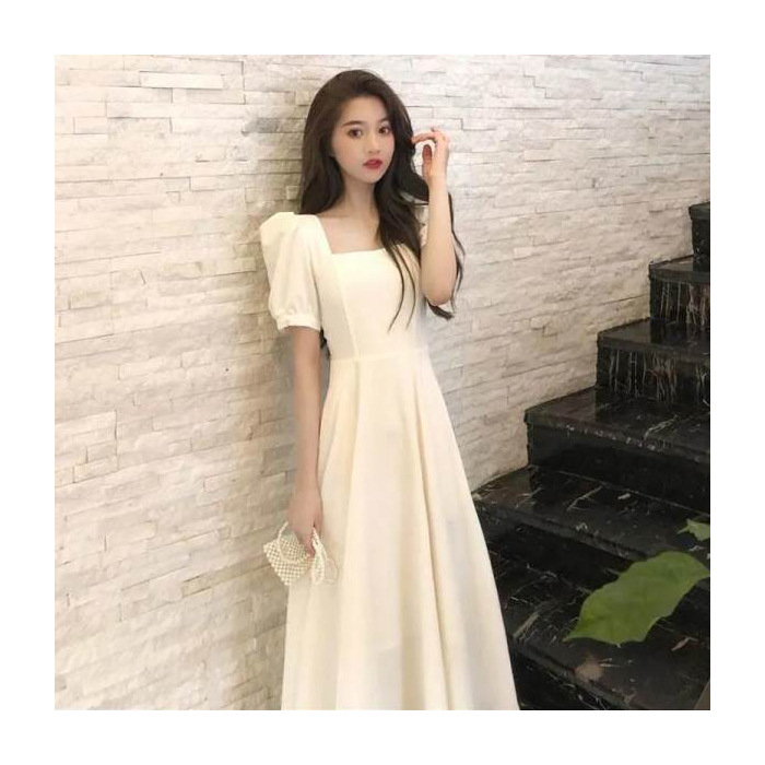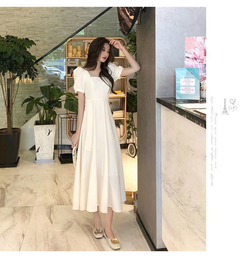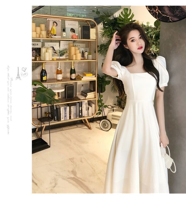 국경 도매 봄과 여름 광장 칼라 허리 슬리밍 헵번 라이트 성숙한 스타일 원피스 여성 퍼프 슬리브 화이트 롱 스커트스토어 가기