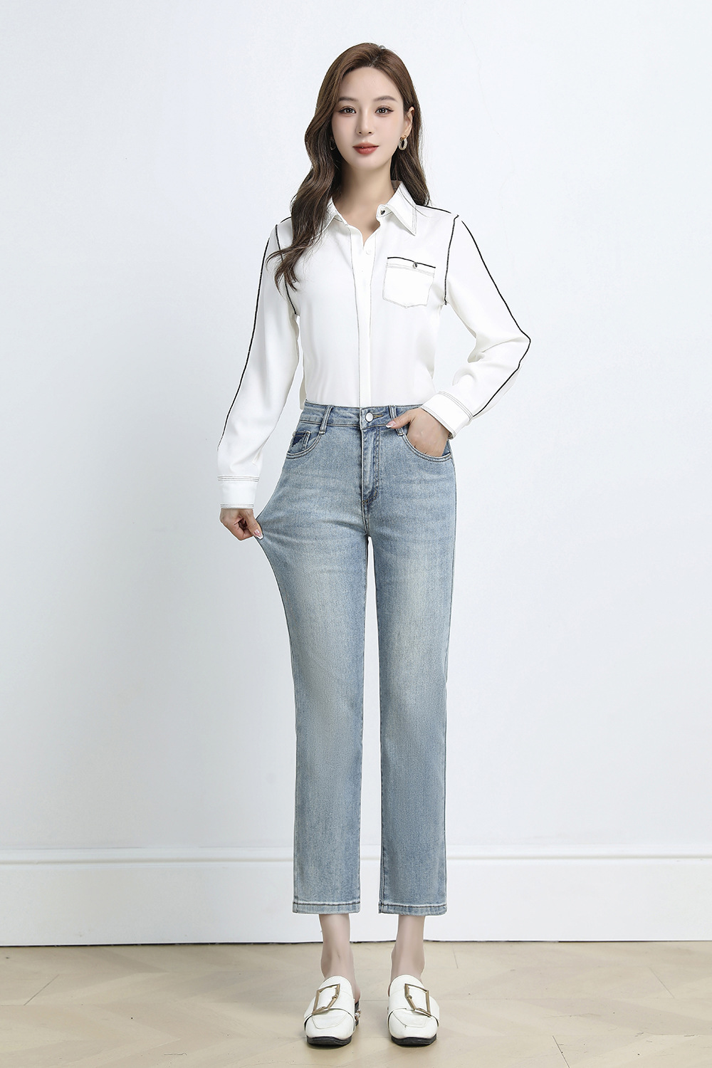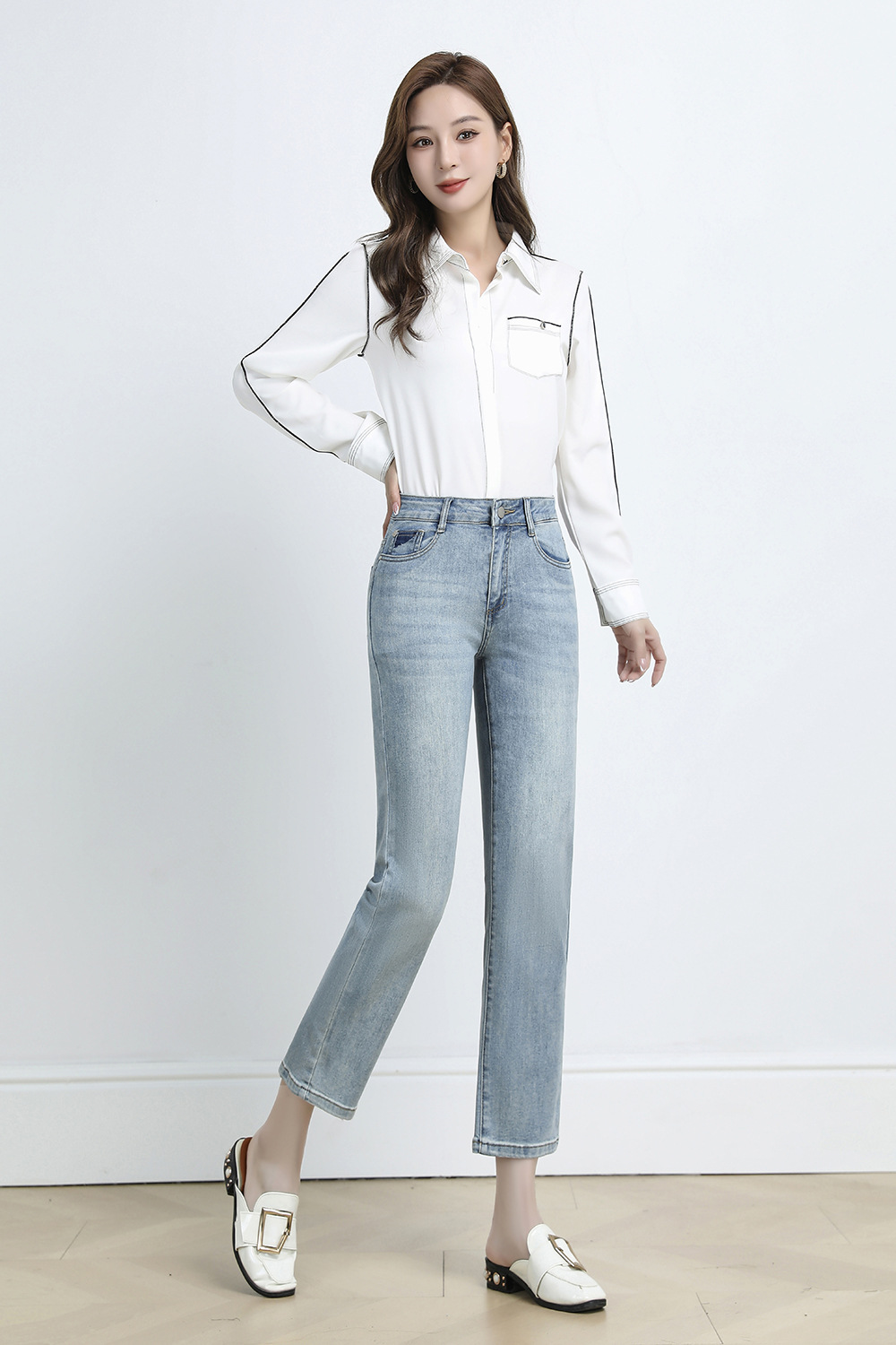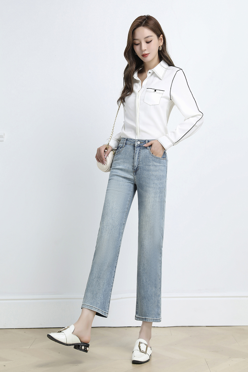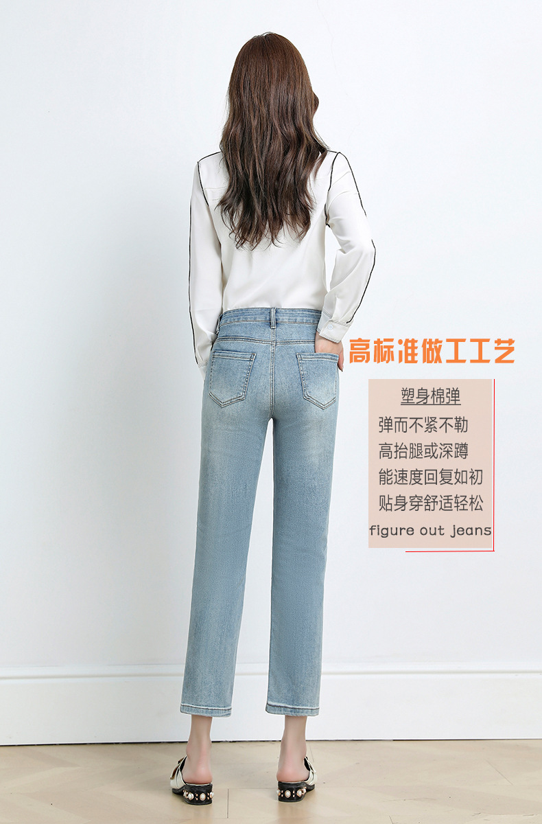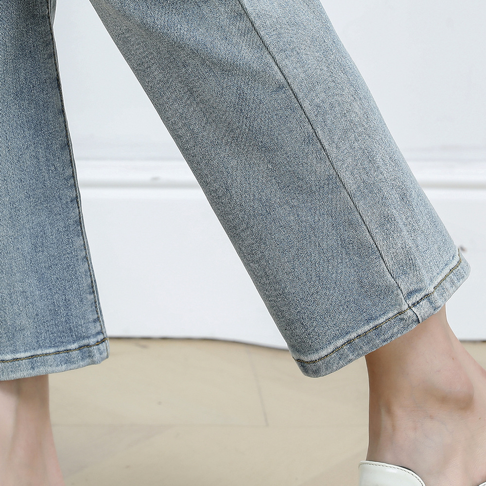 키 작은 분들을 위한 9부 데님 팬츠, 미드하이웨이스트, 신축성, 슬림핏, 플러스 사이즈 여성용 스트레이트 팬츠스토어 가기