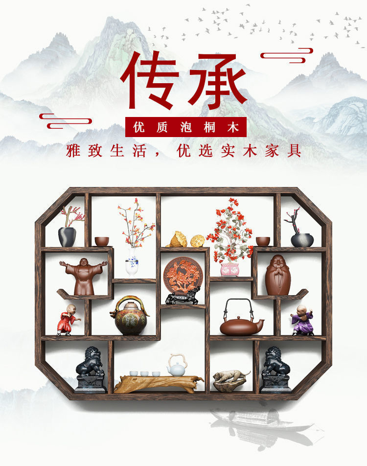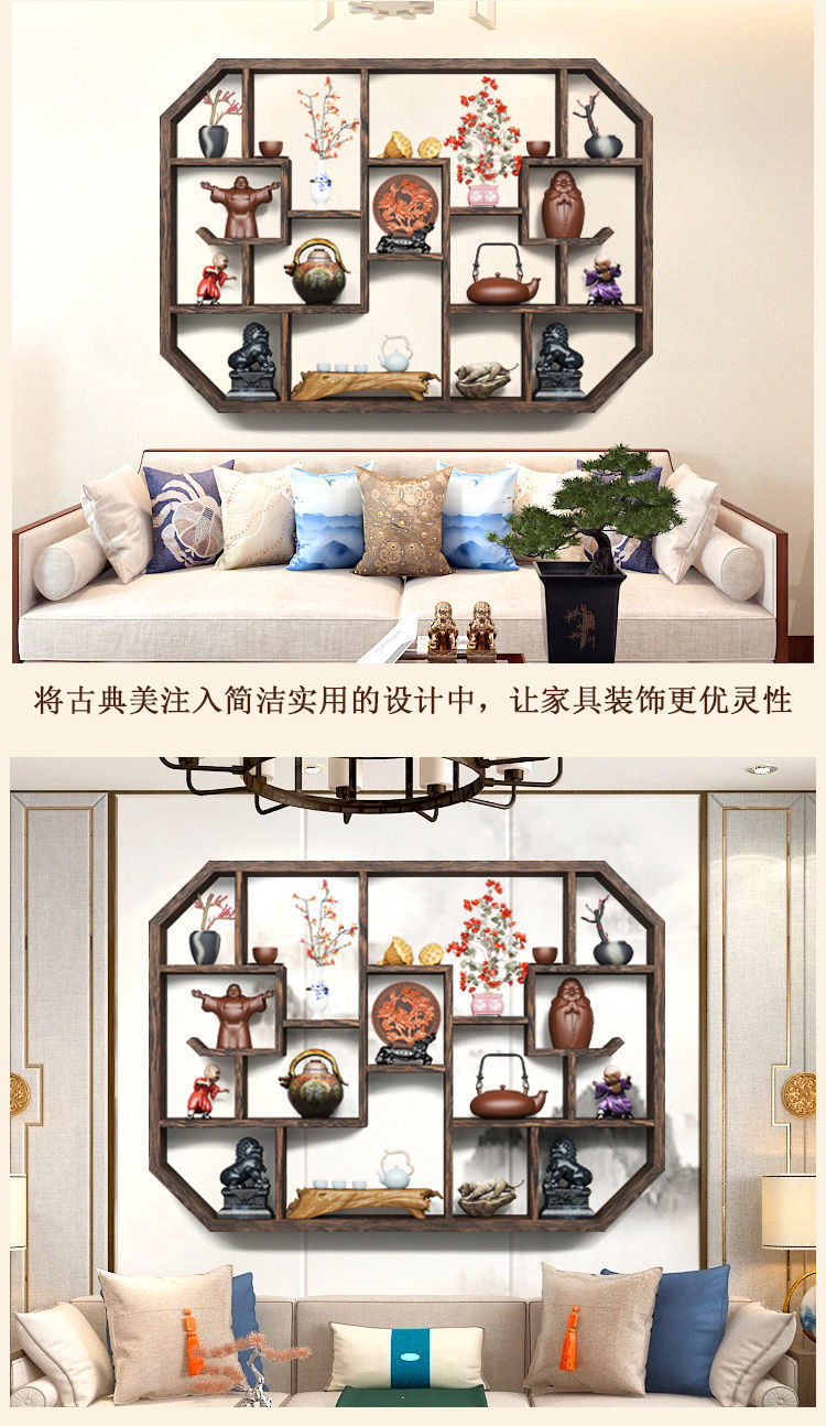 골동품 선반 단단한 나무 중국 스타일 벽걸이 선반 파티션 Duobaoge 격자 선반 장식 간단한 차 세트 랙