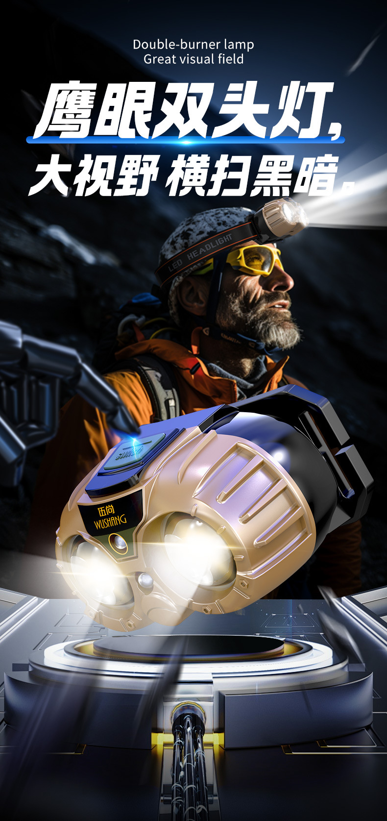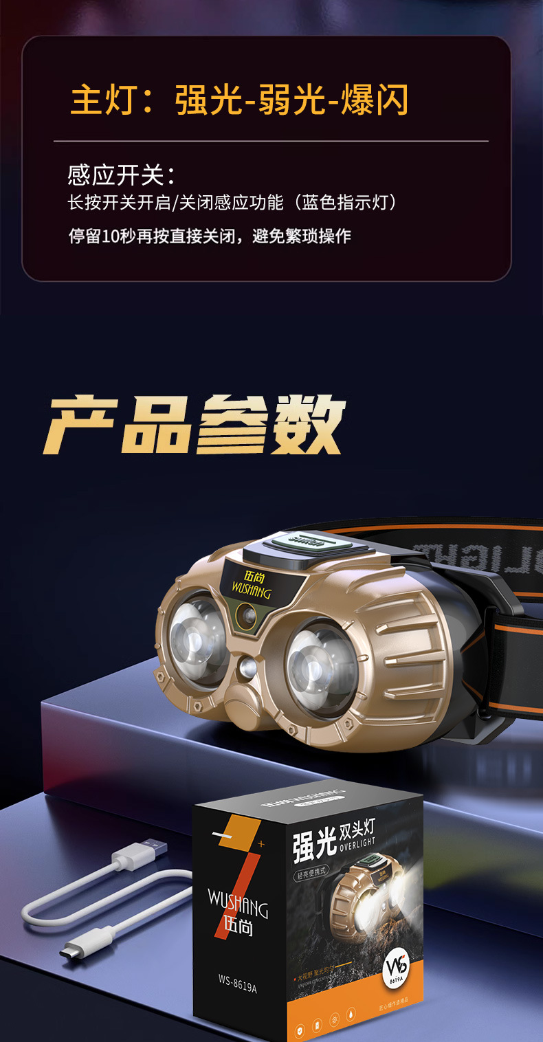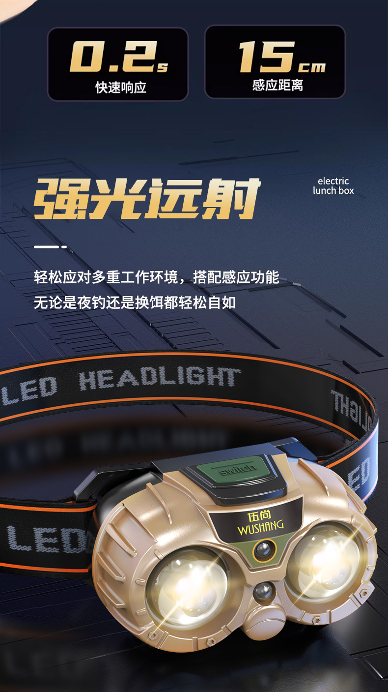 Wu Shang 새로운 LED 헤드 라이트 내장 강력한 조명 헤드 라이트 야외 미니 COB 충전식 헤드 라이트 다기능 유도 헤드 라이트스토어 가기