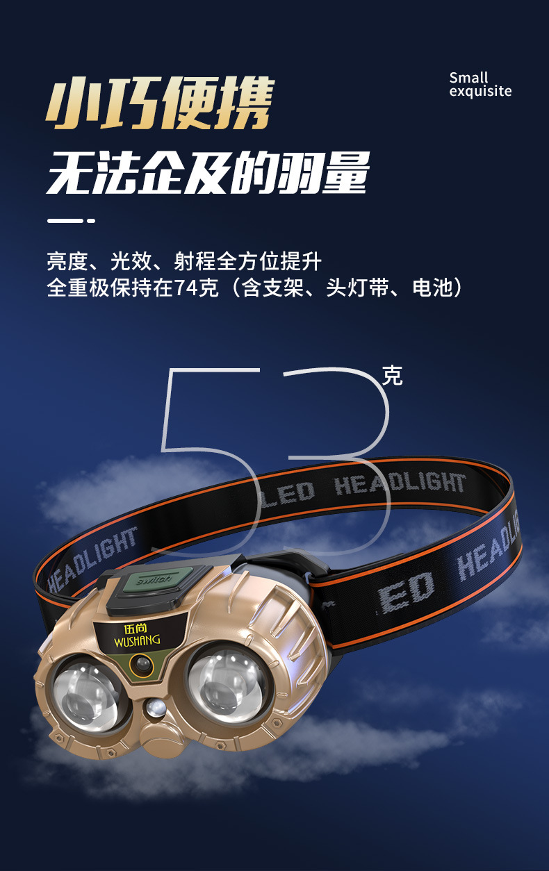 Wu Shang 새로운 LED 헤드 라이트 내장 강력한 조명 헤드 라이트 야외 미니 COB 충전식 헤드 라이트 다기능 유도 헤드 라이트