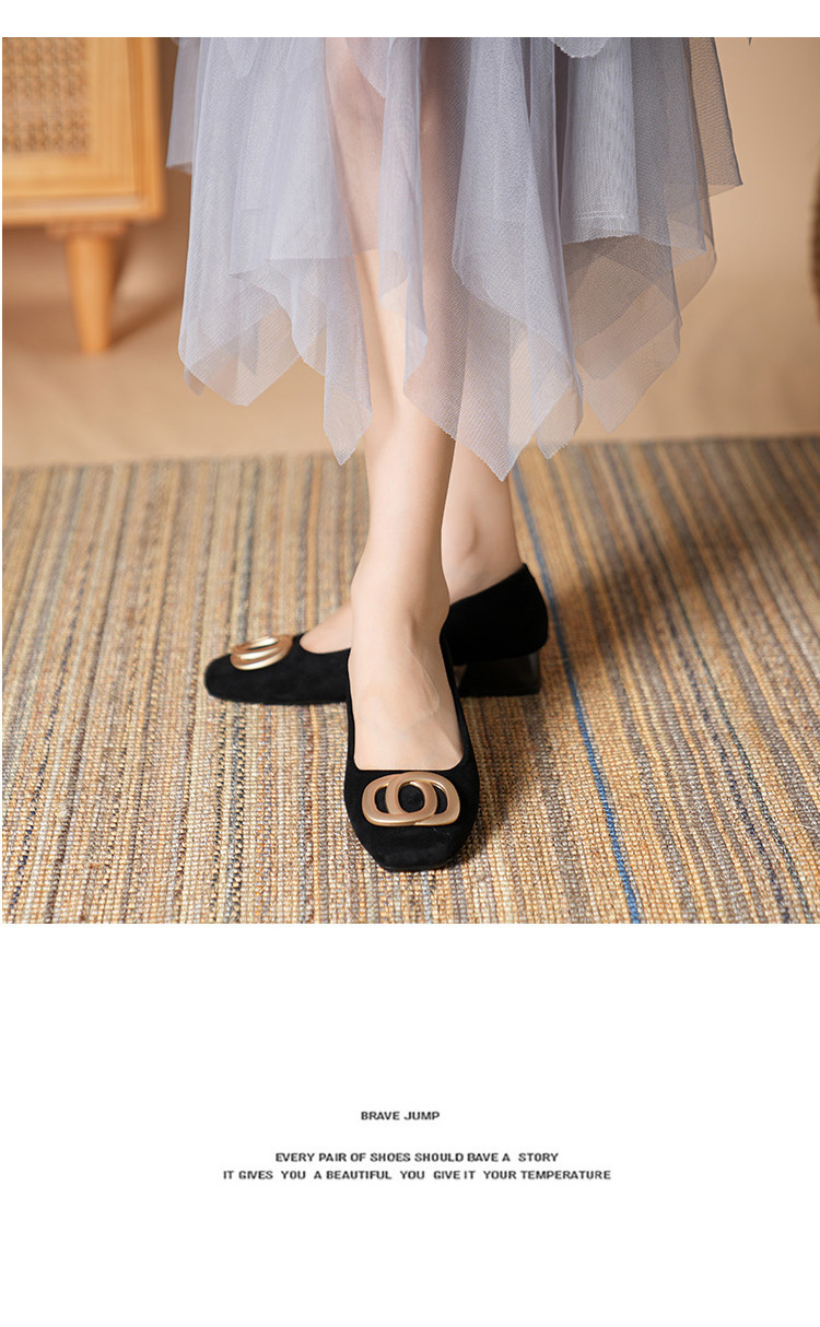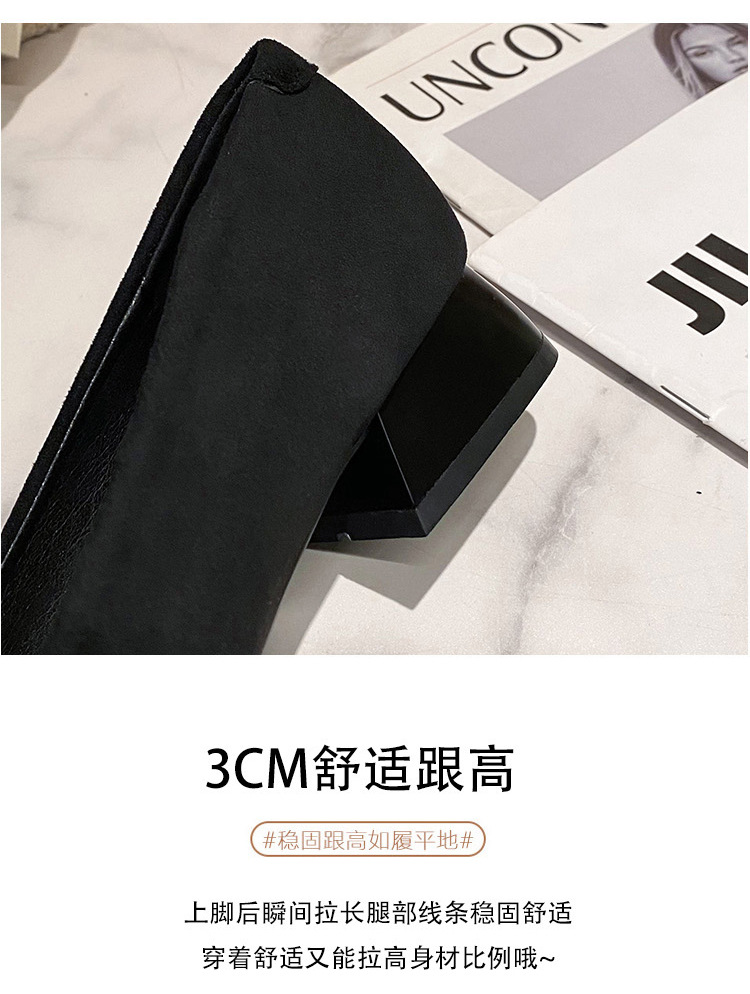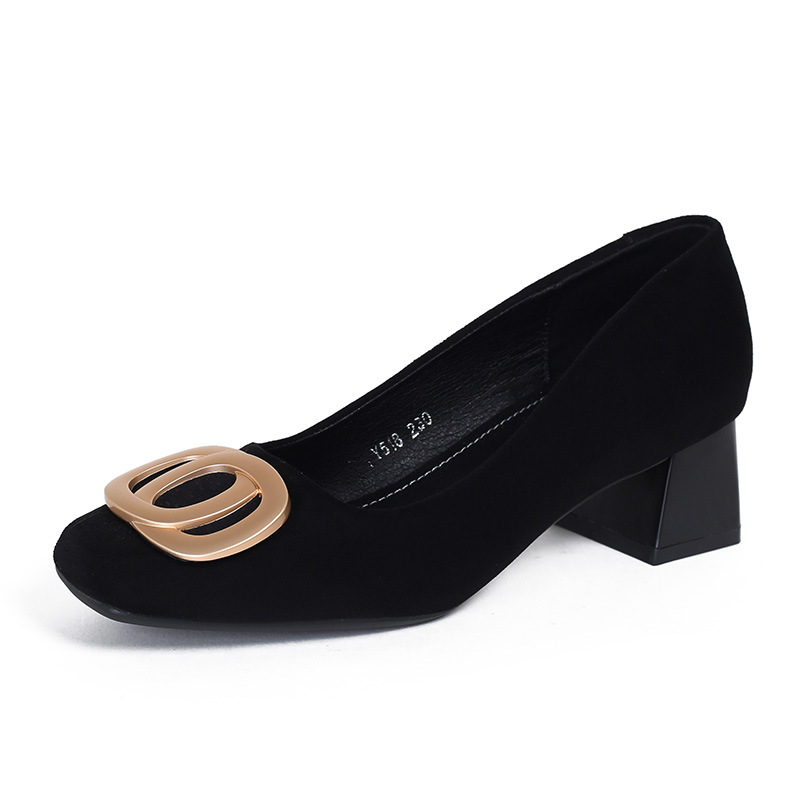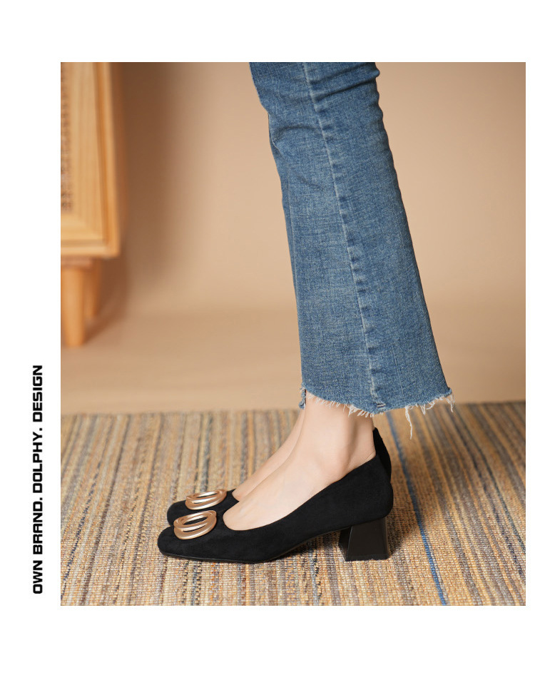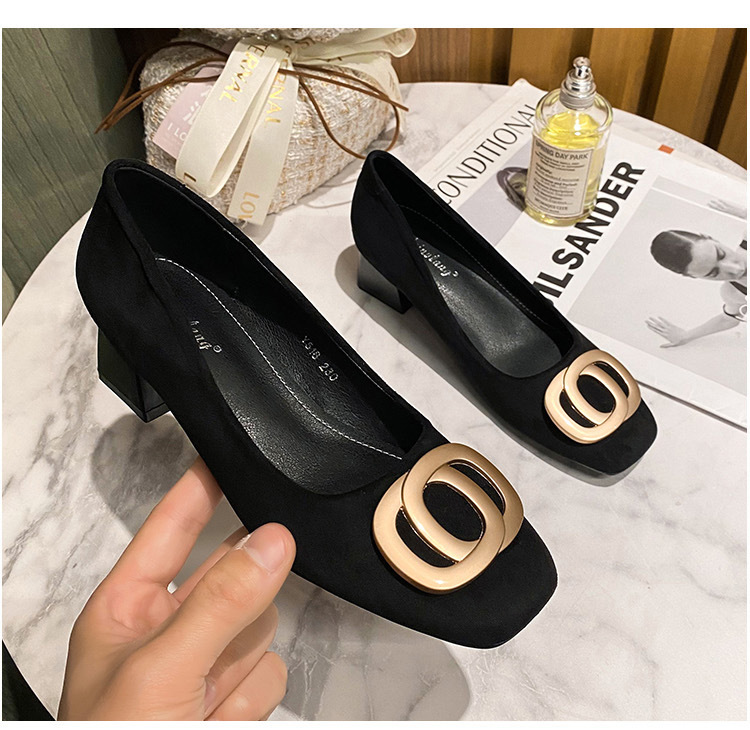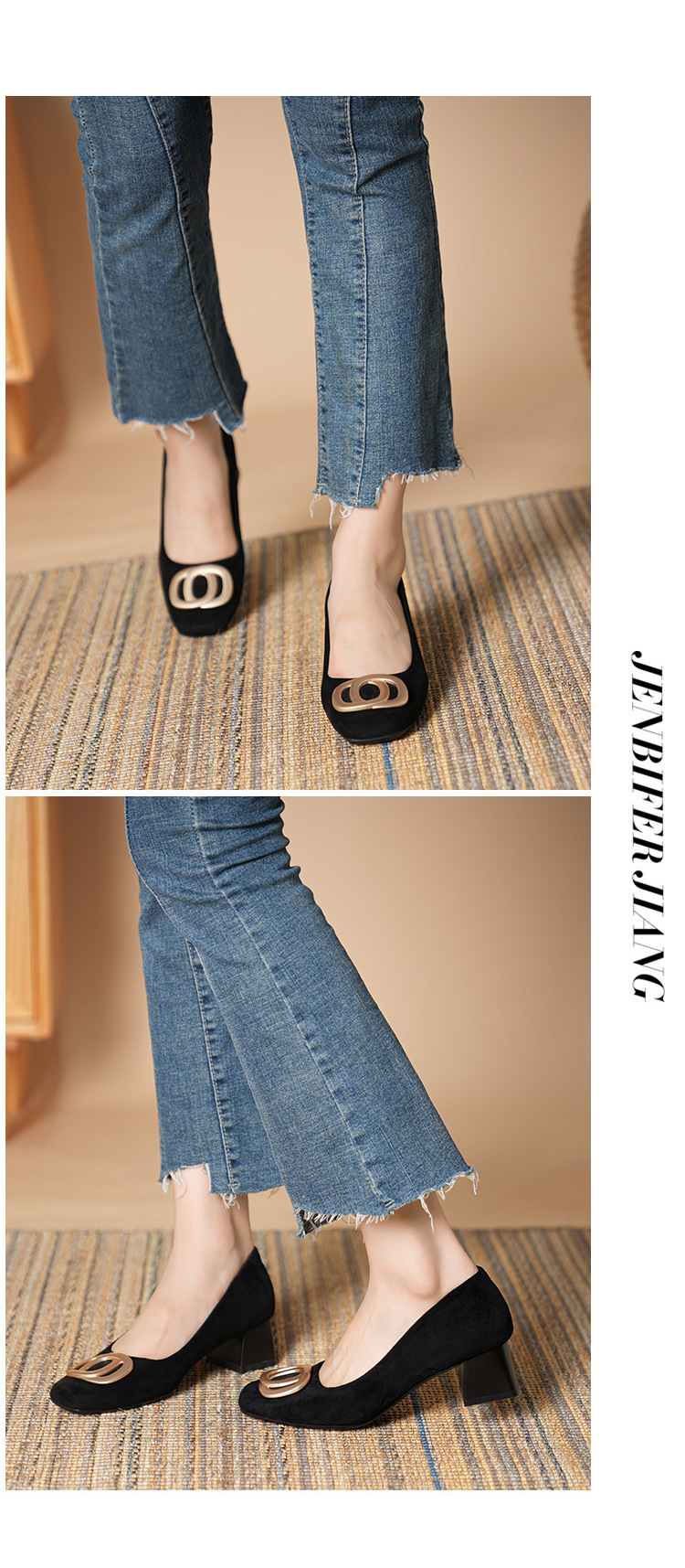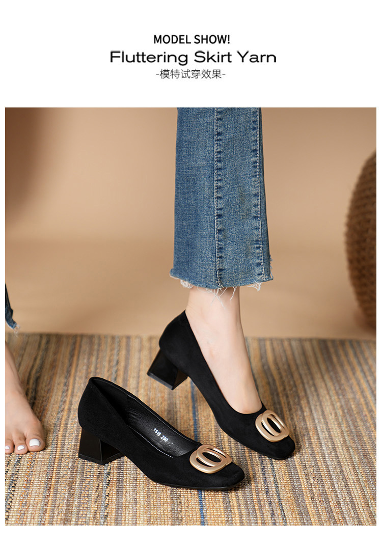 이브닝 스타일 레이디 싱글 레이어 신발 여성 신발 2023 새로운 인기있는 복고풍 통근 소프트 가죽 스퀘어 토 미드 하이힐 할머니 신발스토어 가기