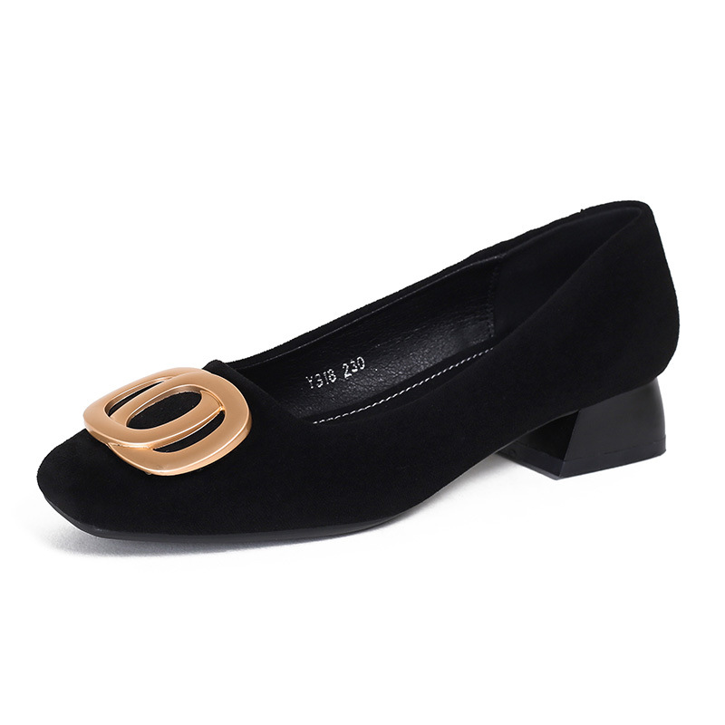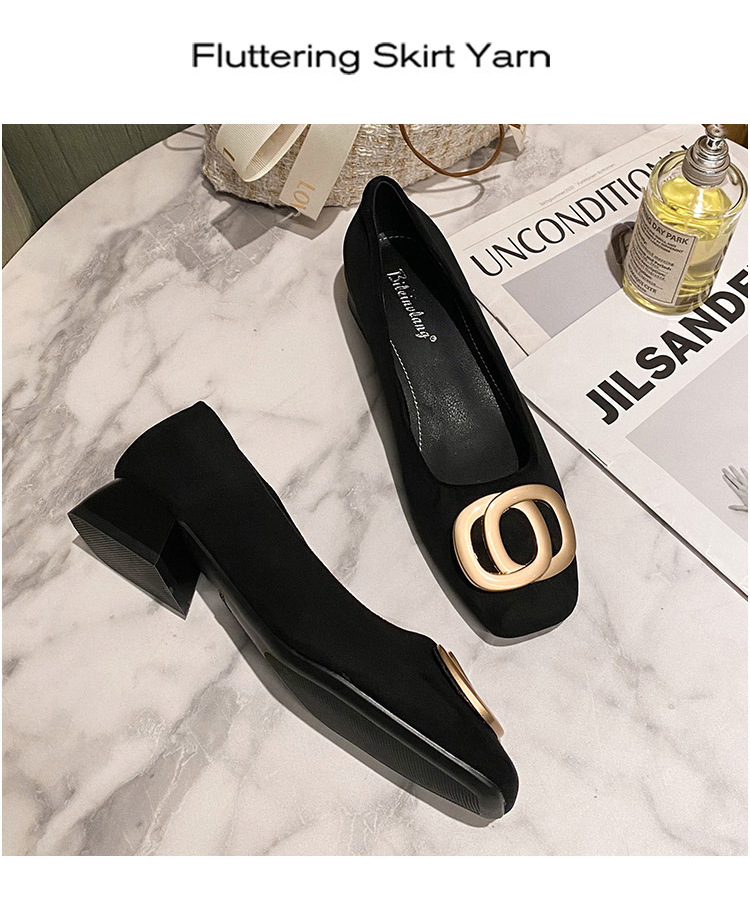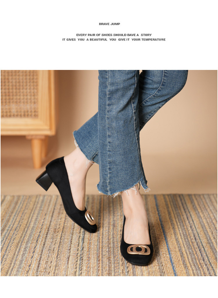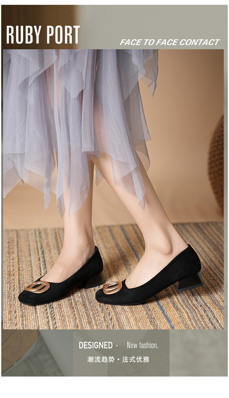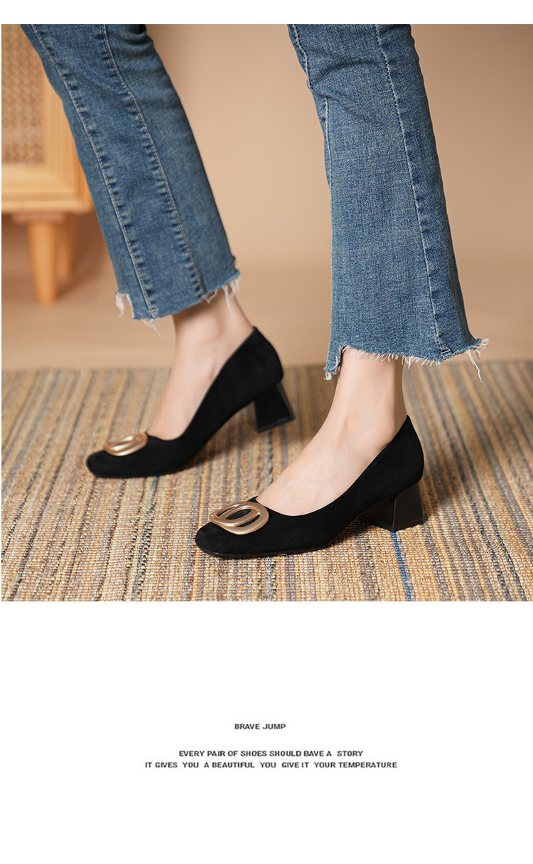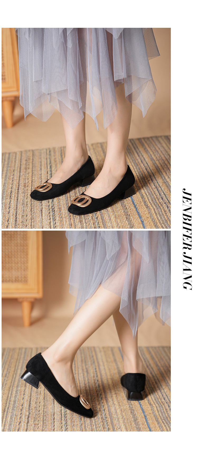 이브닝 스타일 레이디 싱글 레이어 신발 여성 신발 2023 새로운 인기있는 복고풍 통근 소프트 가죽 스퀘어 토 미드 하이힐 할머니 신발스토어 가기