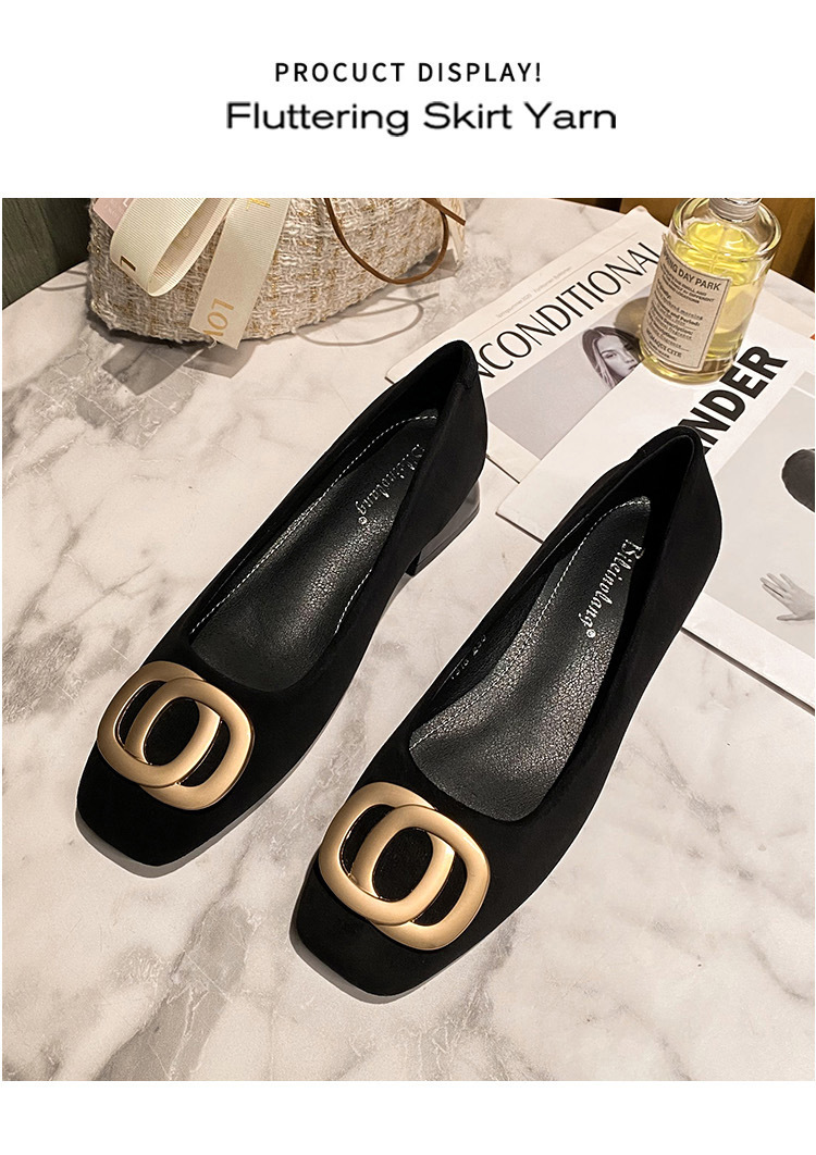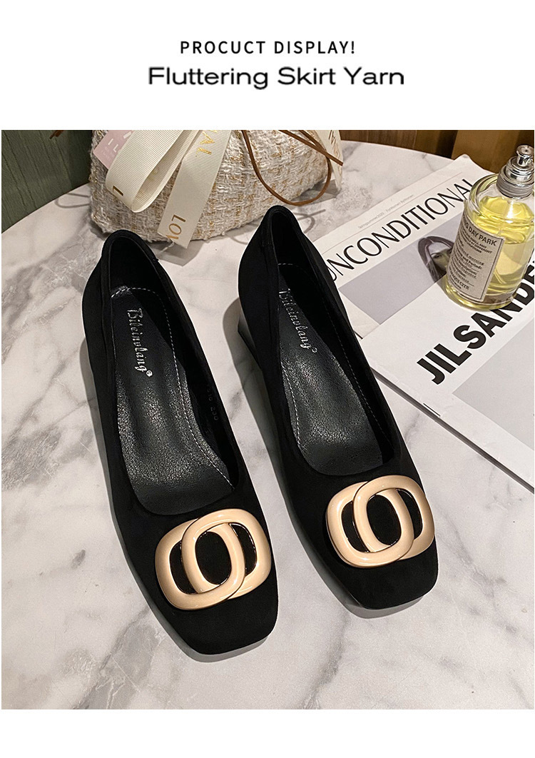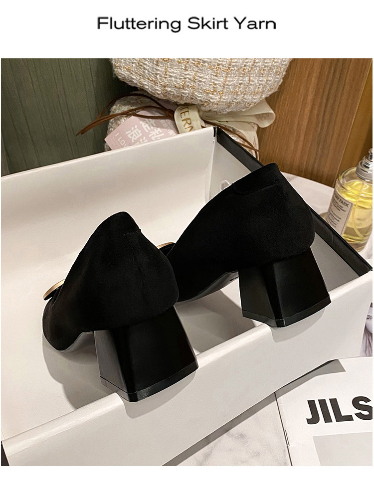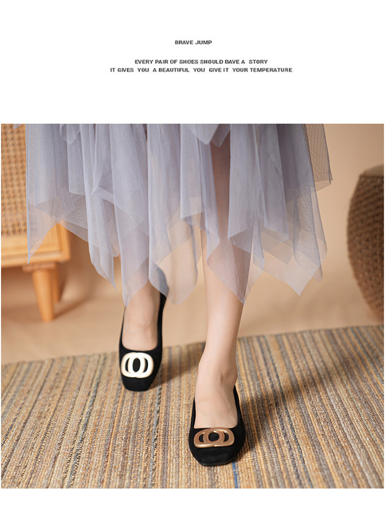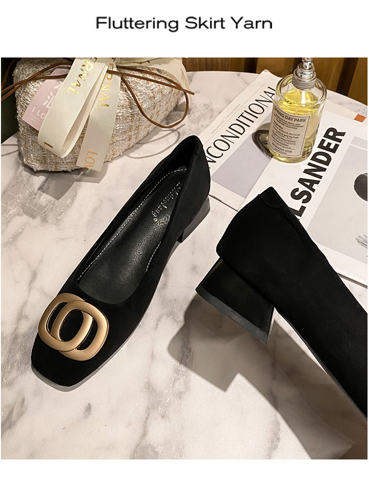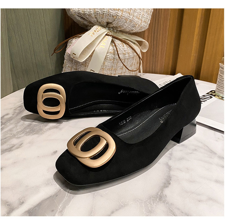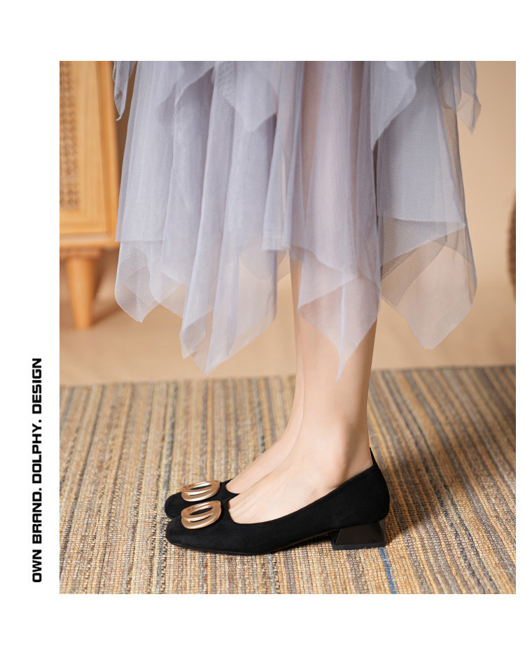 이브닝 스타일 레이디 싱글 레이어 신발 여성 신발 2023 새로운 인기있는 복고풍 통근 소프트 가죽 스퀘어 토 미드 하이힐 할머니 신발스토어 가기