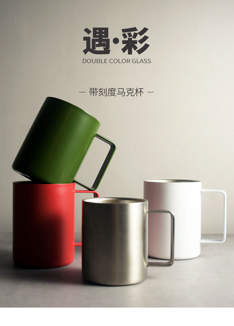 노르딕 ins316 머그 커피 컵 핸들 높은 색상 가치 컵 스케일 보온병 컵이있는 더블 레이어 안티 스케일 컵