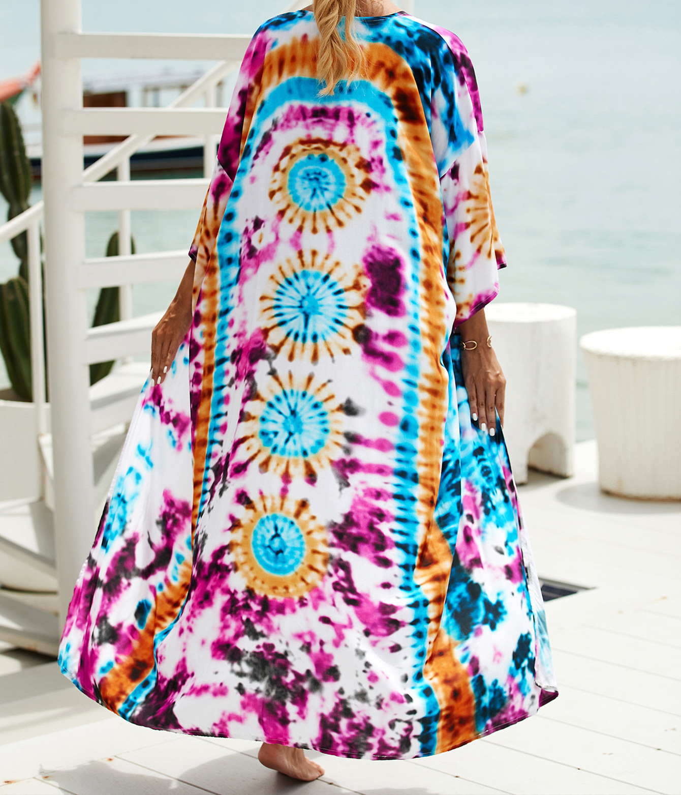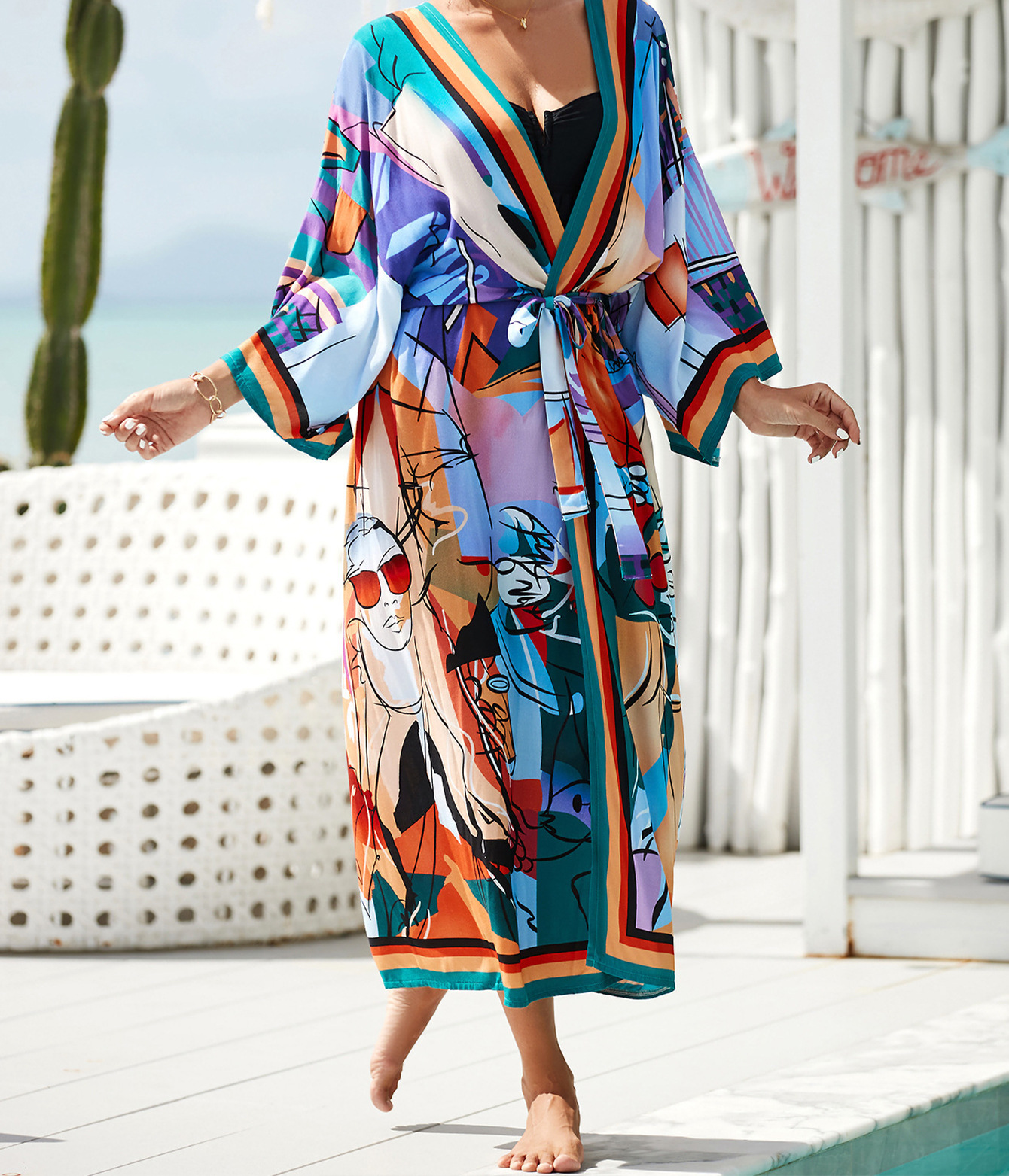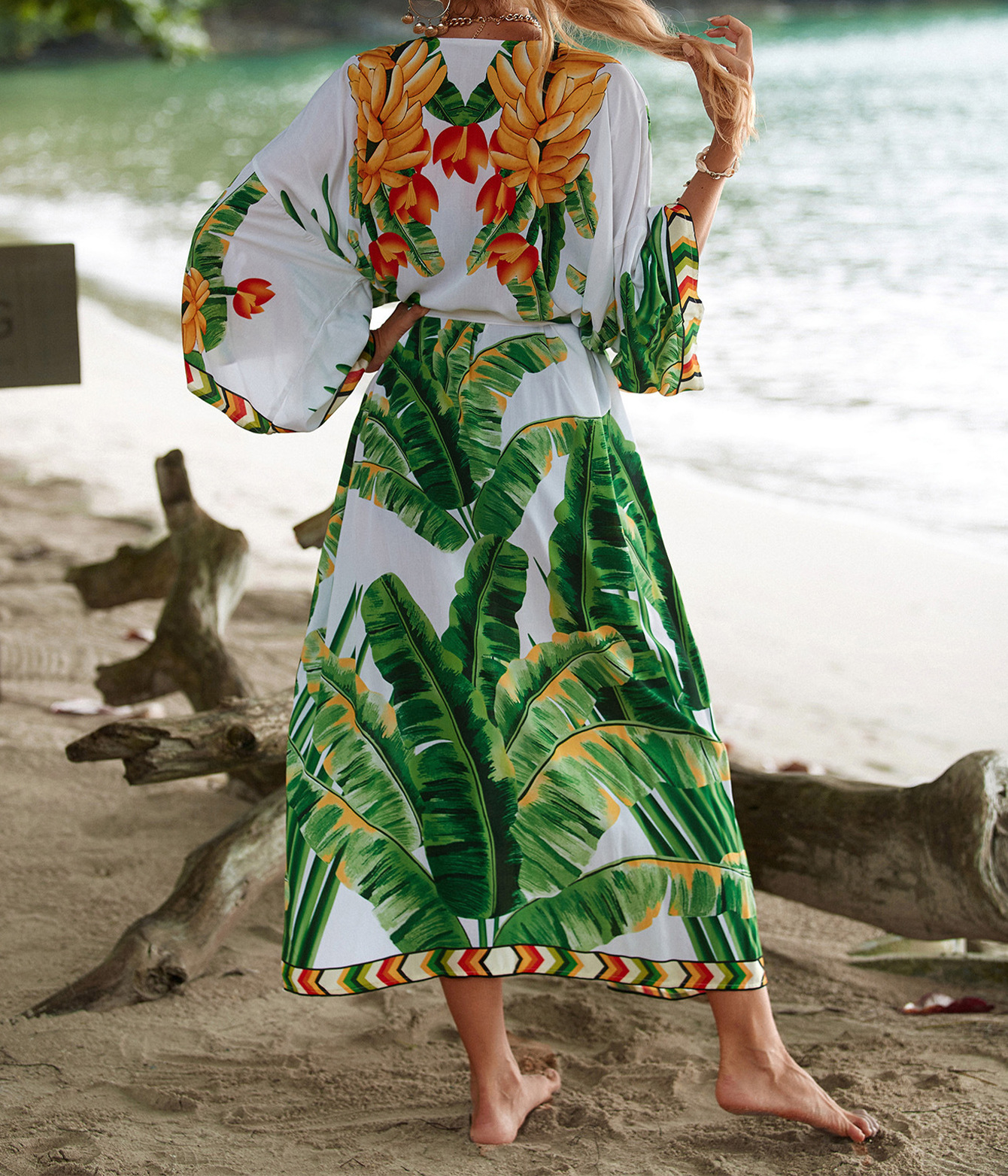 2023 새로운 유럽과 미국의 레이온 프린트 비치 코트 섹시한 선 스크린 카디건 휴가 비키니 겉옷 블라우스
