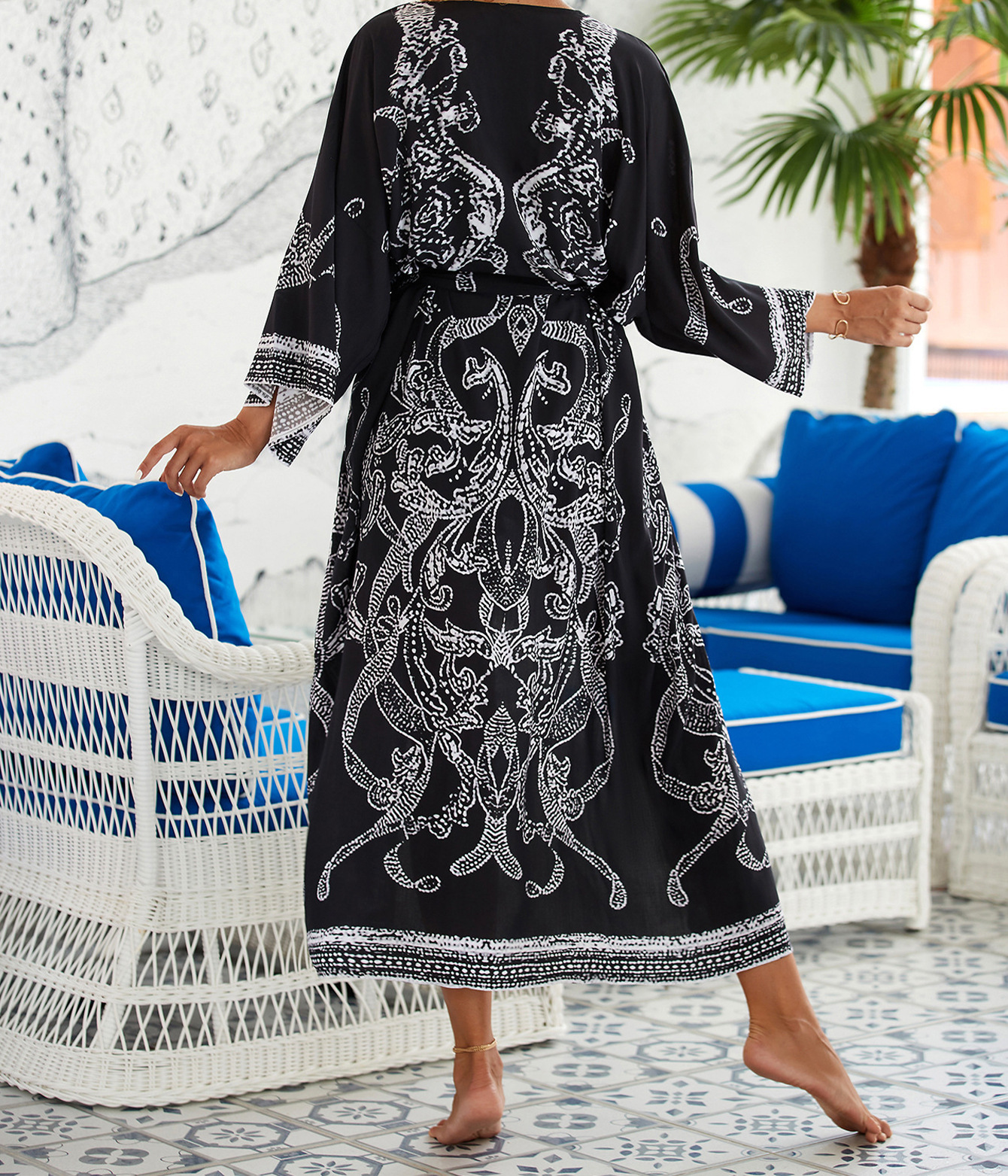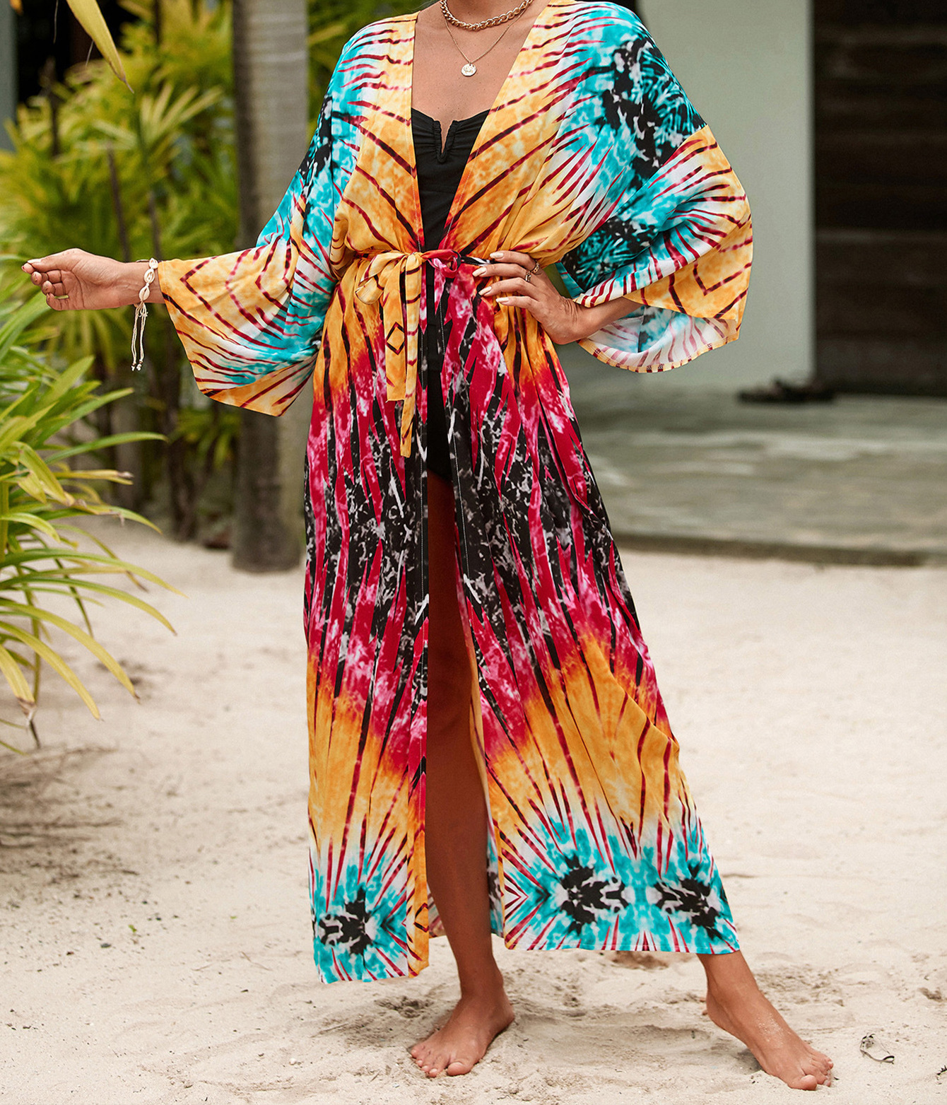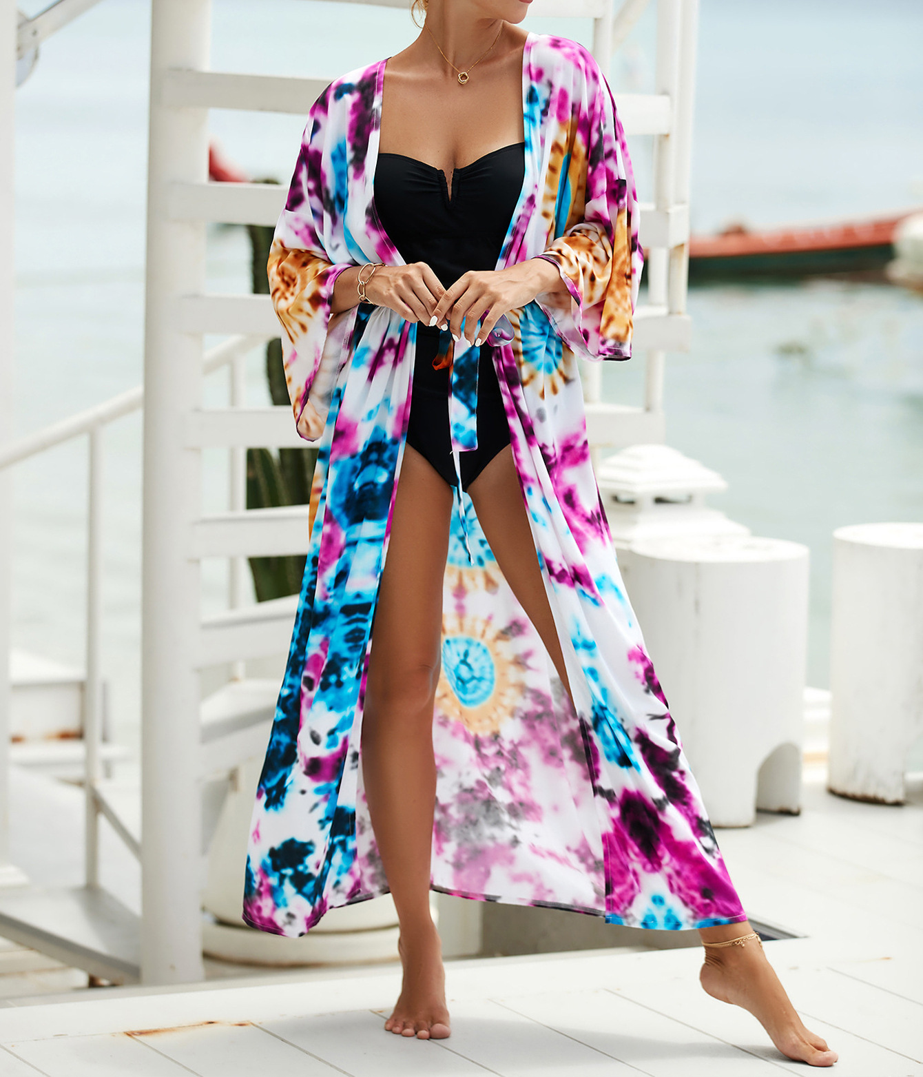 2023 새로운 유럽과 미국의 레이온 프린트 비치 코트 섹시한 선 스크린 카디건 휴가 비키니 겉옷 블라우스스토어 가기