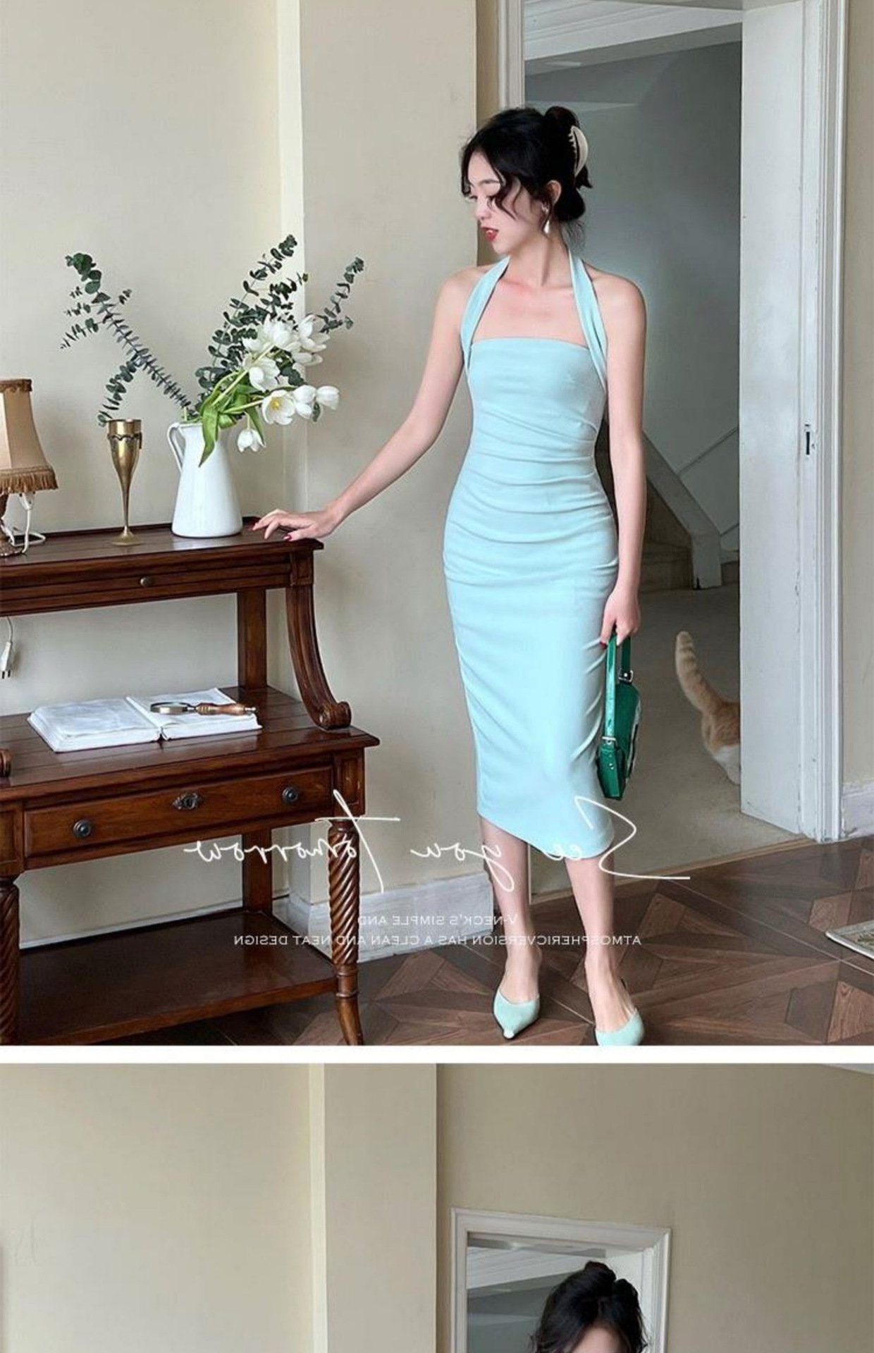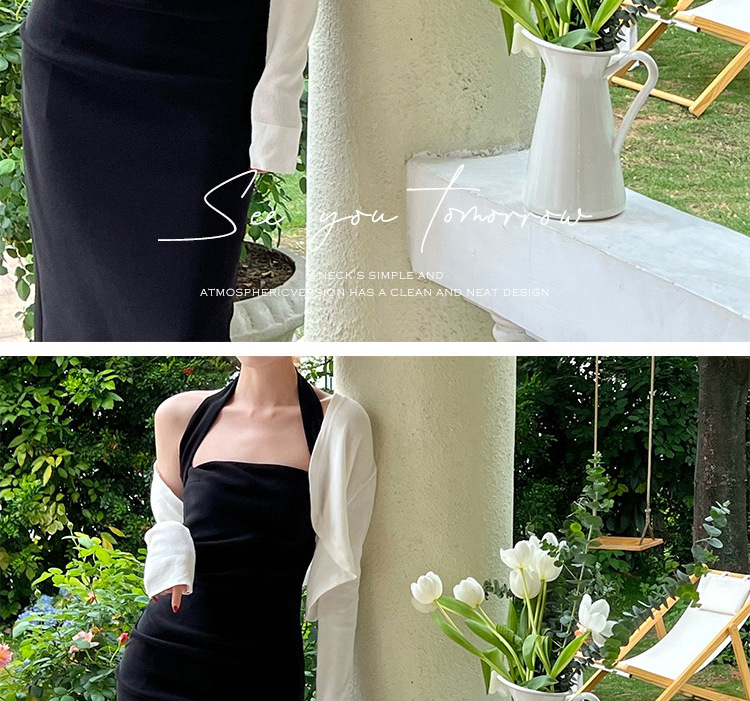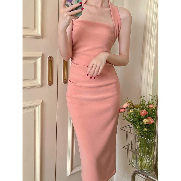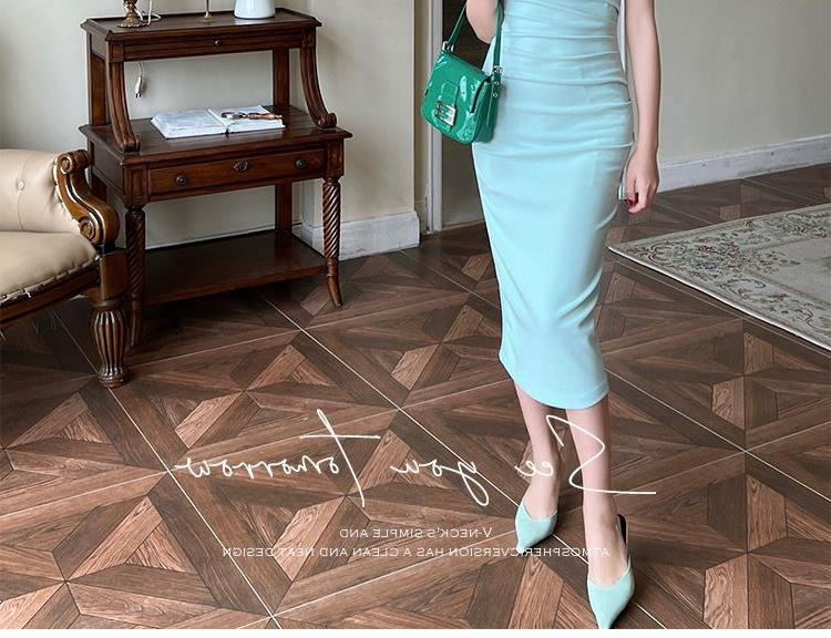 국경 간 대외 무역 여름 순수한 욕망 프랑스 틈새 목 원피스 여성용 슬림 슬리밍 우아한 서스펜스 엉덩이 원피스스토어 가기