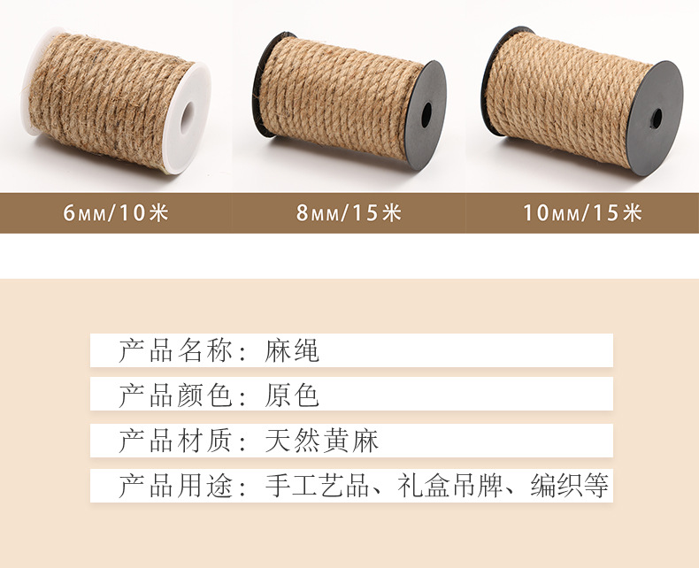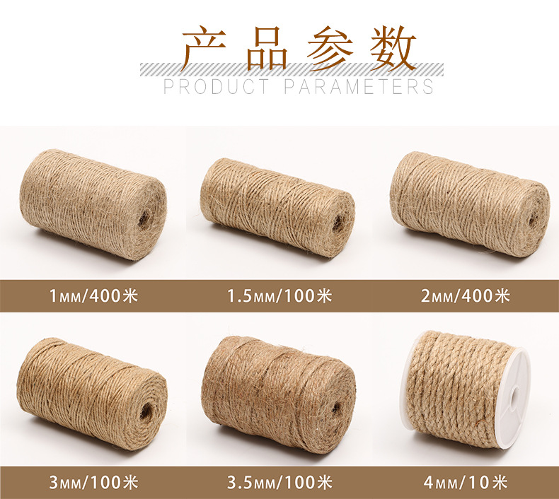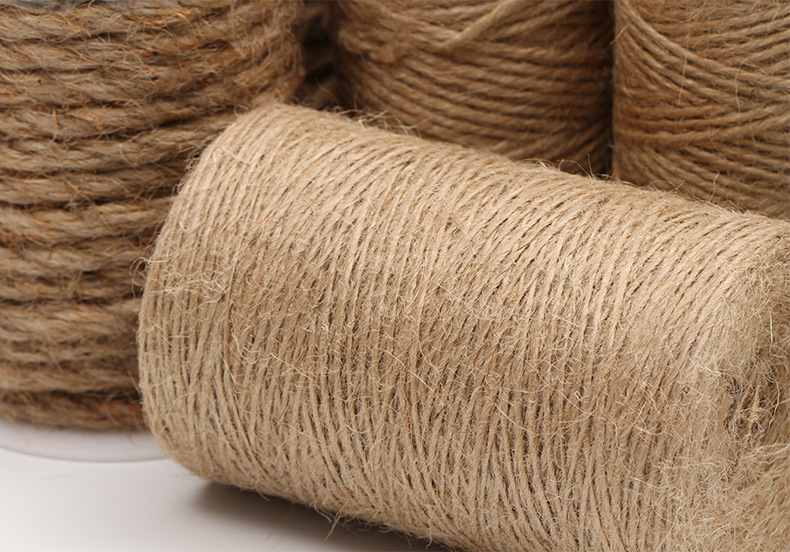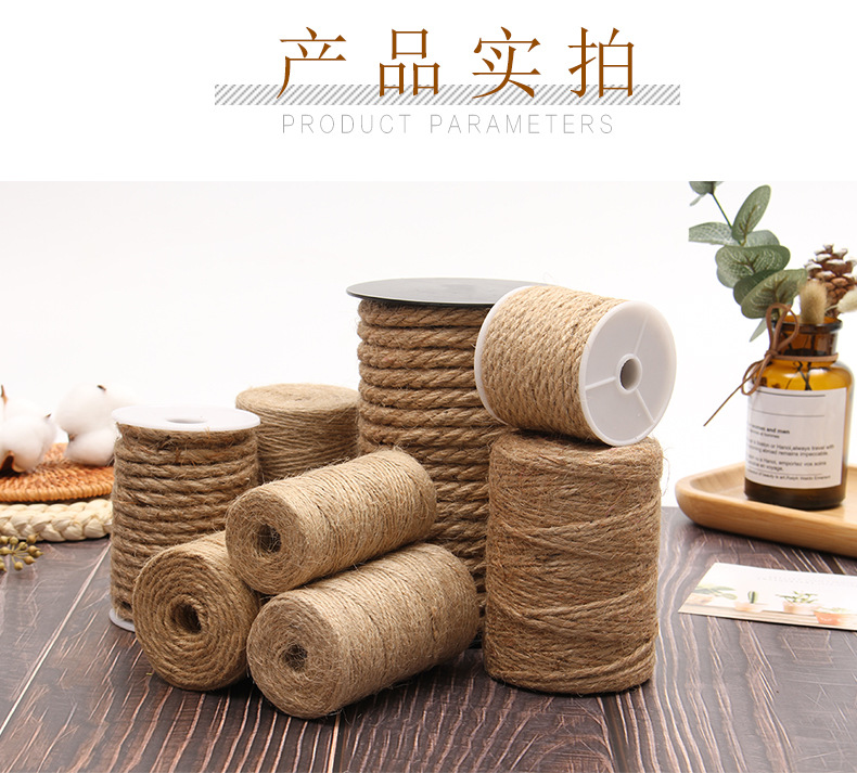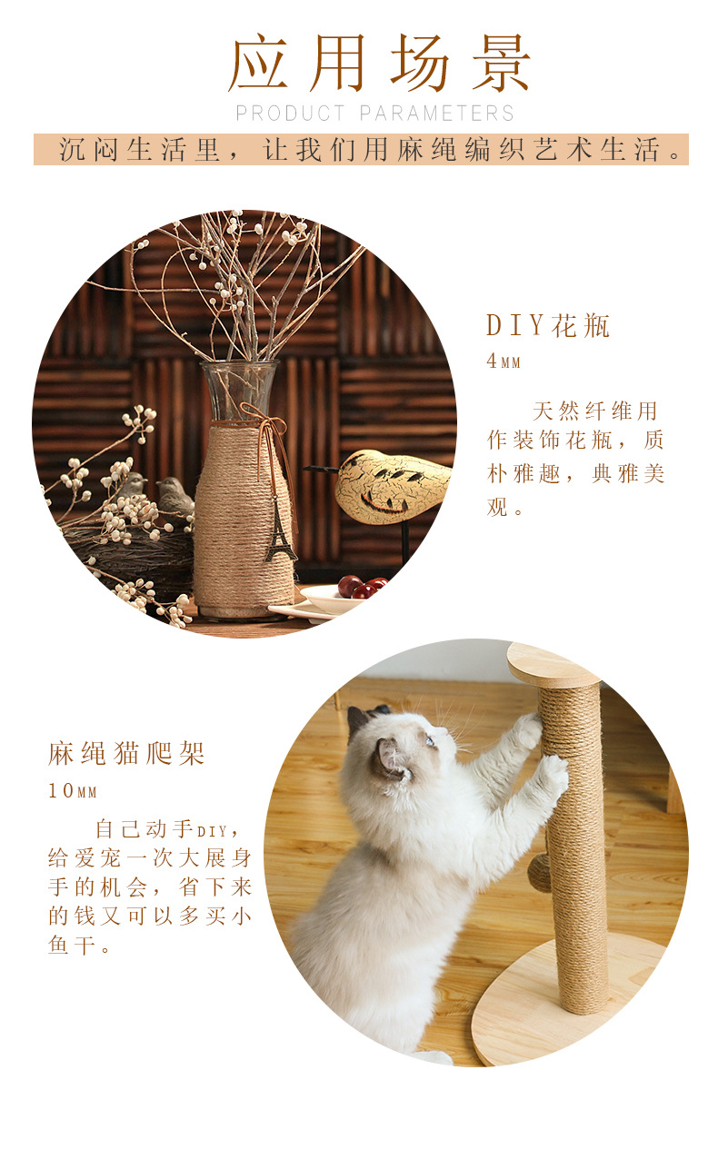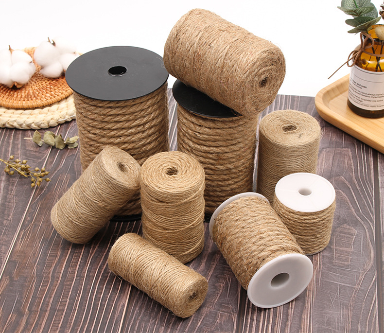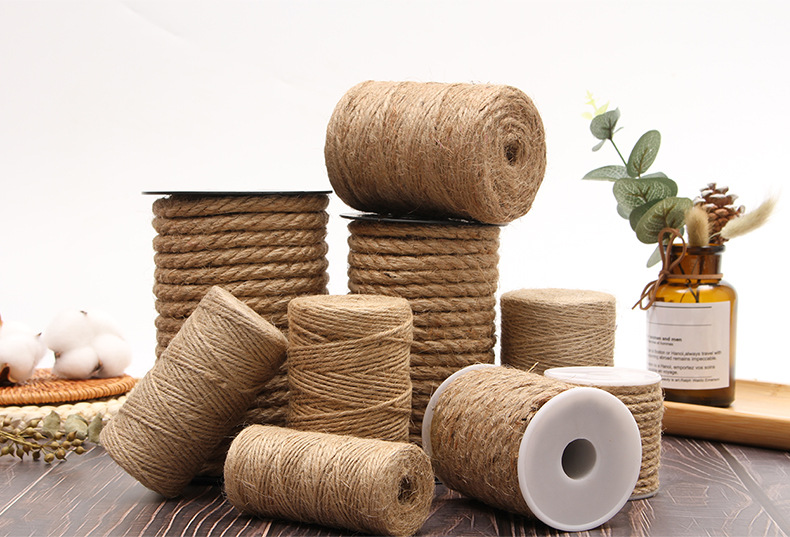 천연 황마 4mm 로프를 덮는 두껍고 얇은 평평한 파이프 장식을 묶는 고양이 등반 대마 로프 수제 DIY 소재스토어 가기