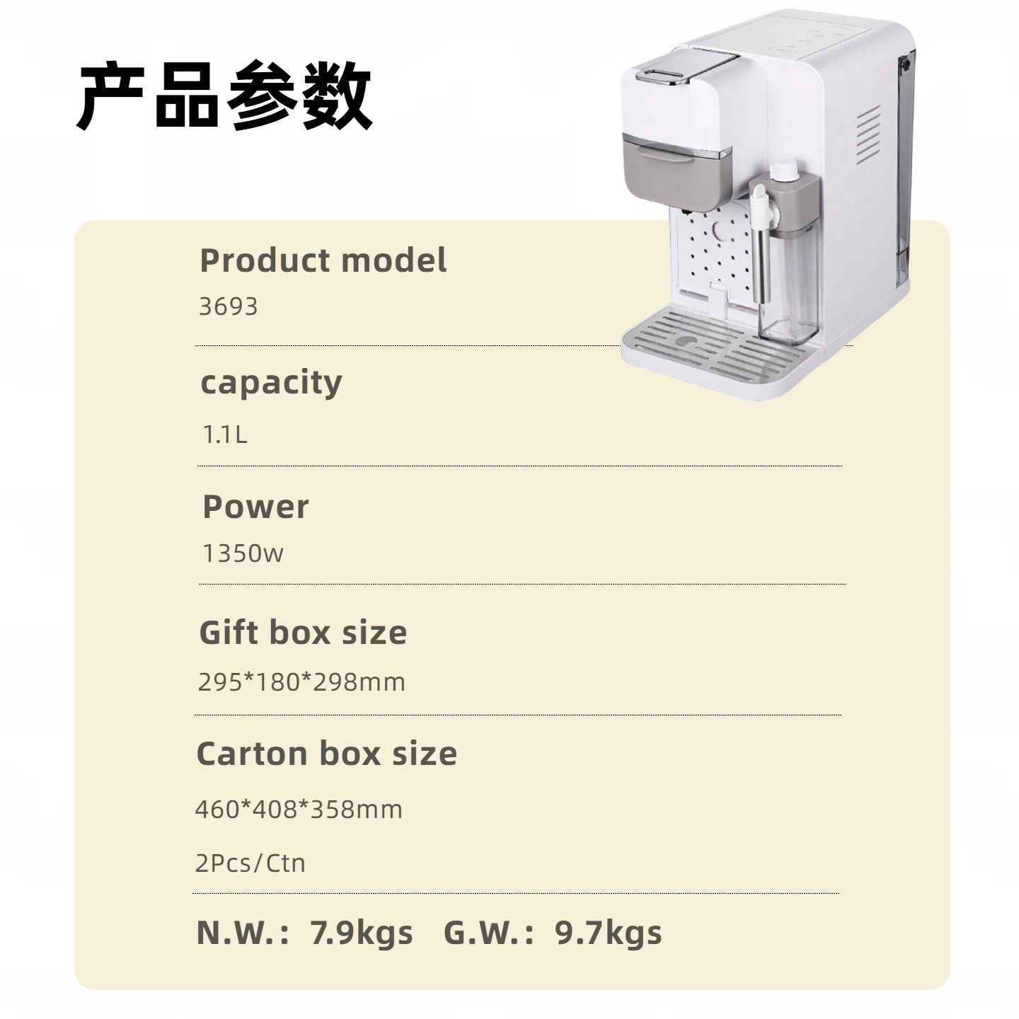 • With adaptorforground coffee(1 cup / 2 cups filter) and nespresso
