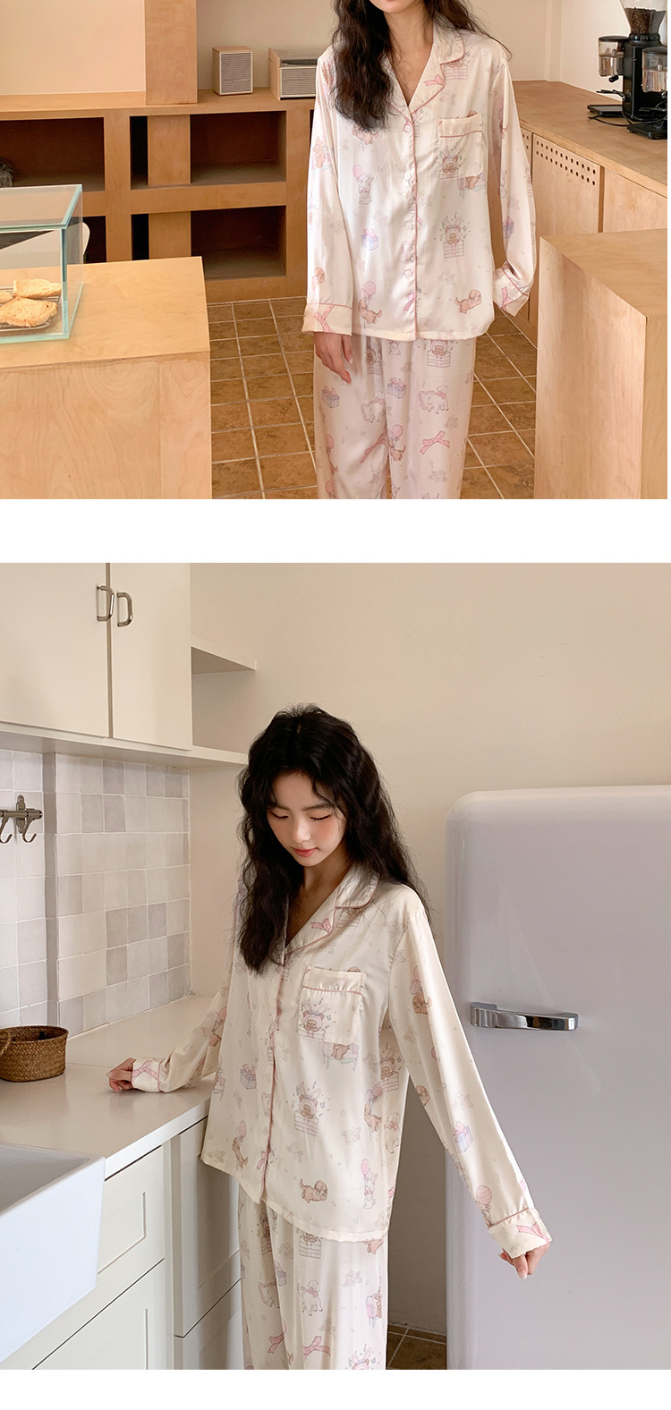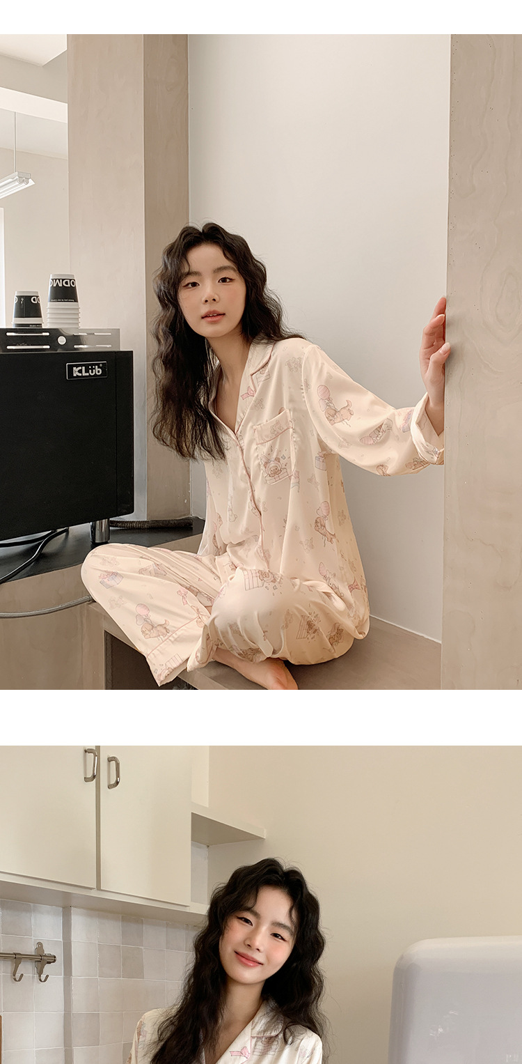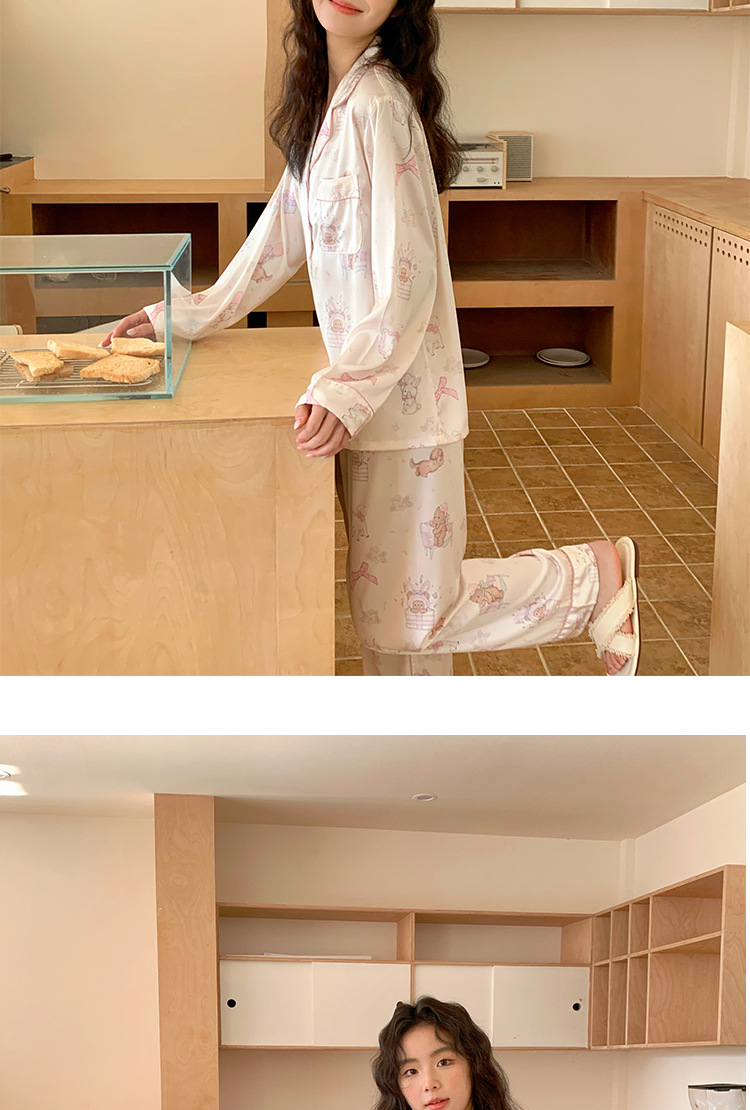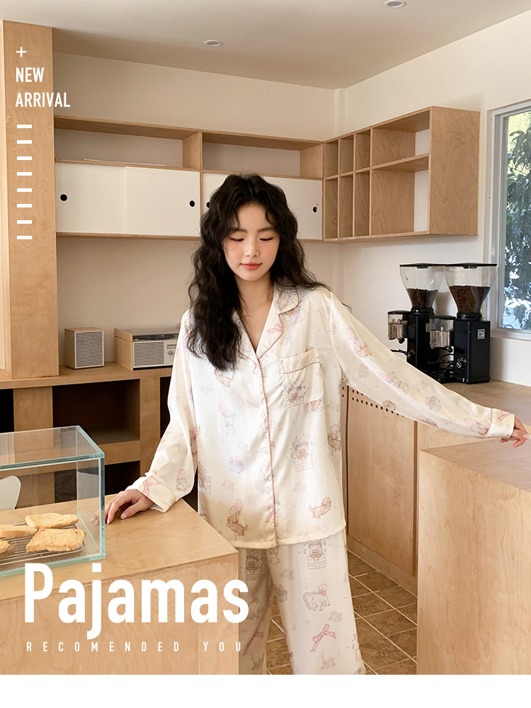 핑크 베어 파자마 Girly Sense Ins 한 스타일 달콤한 실크 봄 새 홈웨어 옷깃 얇은스토어 가기