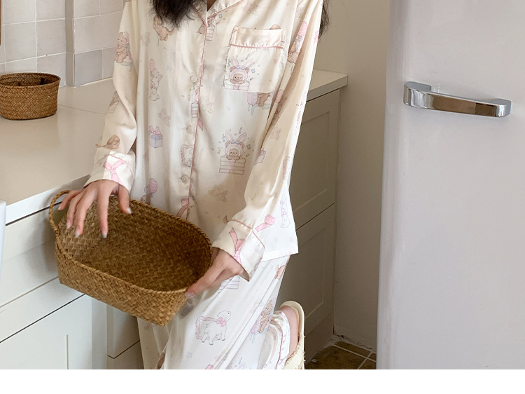 핑크 베어 파자마 Girly Sense Ins 한 스타일 달콤한 실크 봄 새 홈웨어 옷깃 얇은