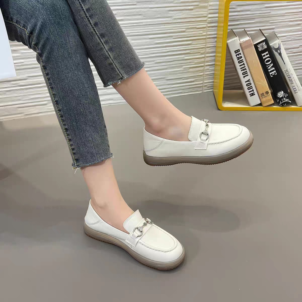 탑 레이어 소 가죽 흰색 신발 여성의 로우 컷 힐 슬립 온 플랫 슈즈 여성의 부드러운 가죽 미끄럼 방지 출산 로퍼스토어 가기