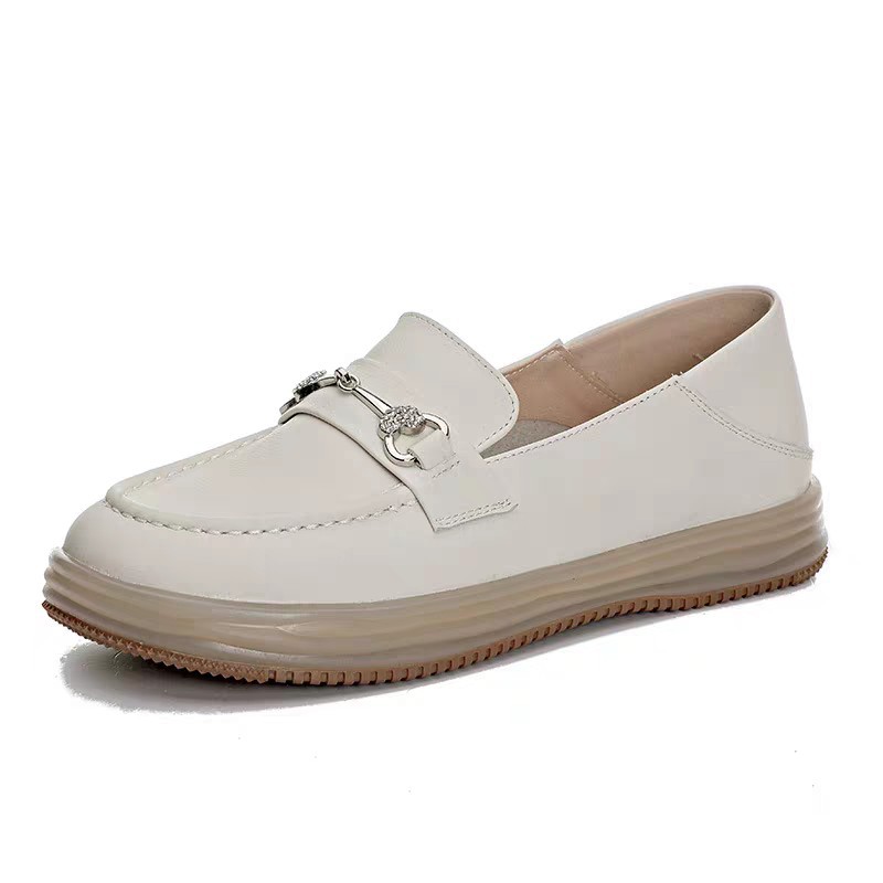탑 레이어 소 가죽 흰색 신발 여성의 로우 컷 힐 슬립 온 플랫 슈즈 여성의 부드러운 가죽 미끄럼 방지 출산 로퍼