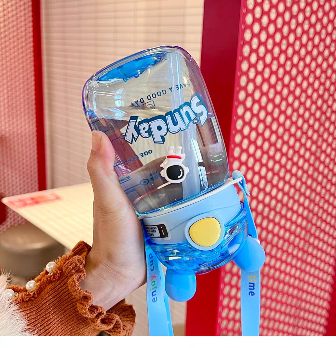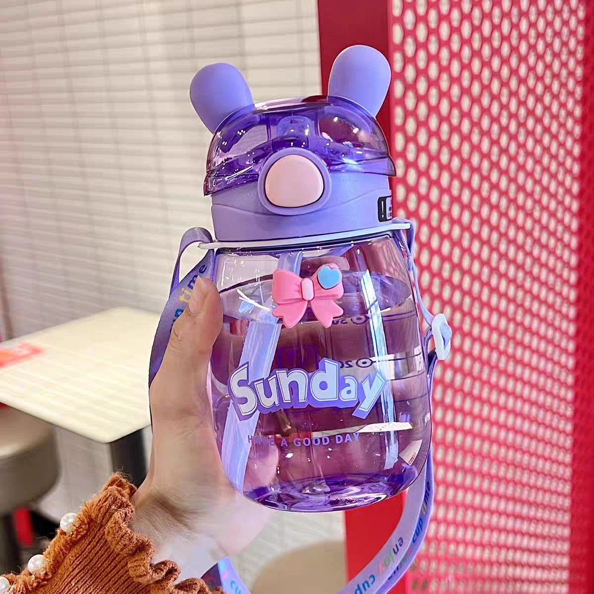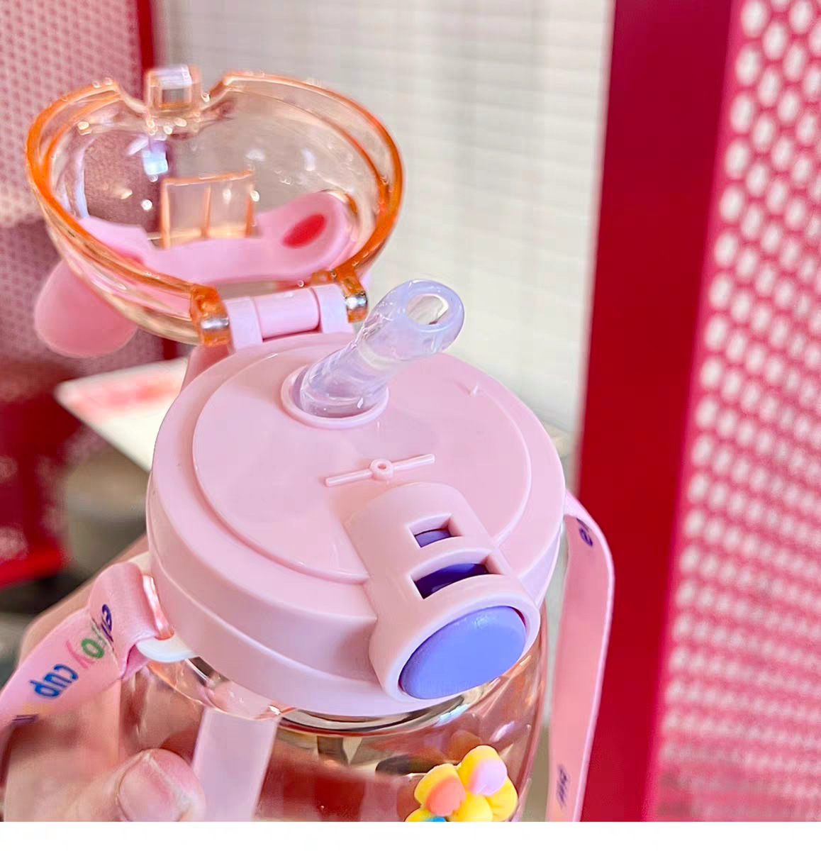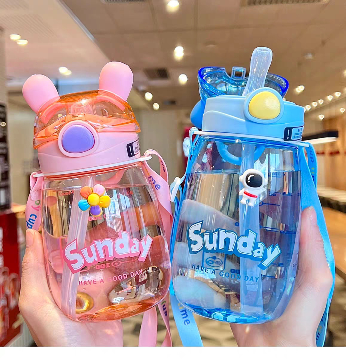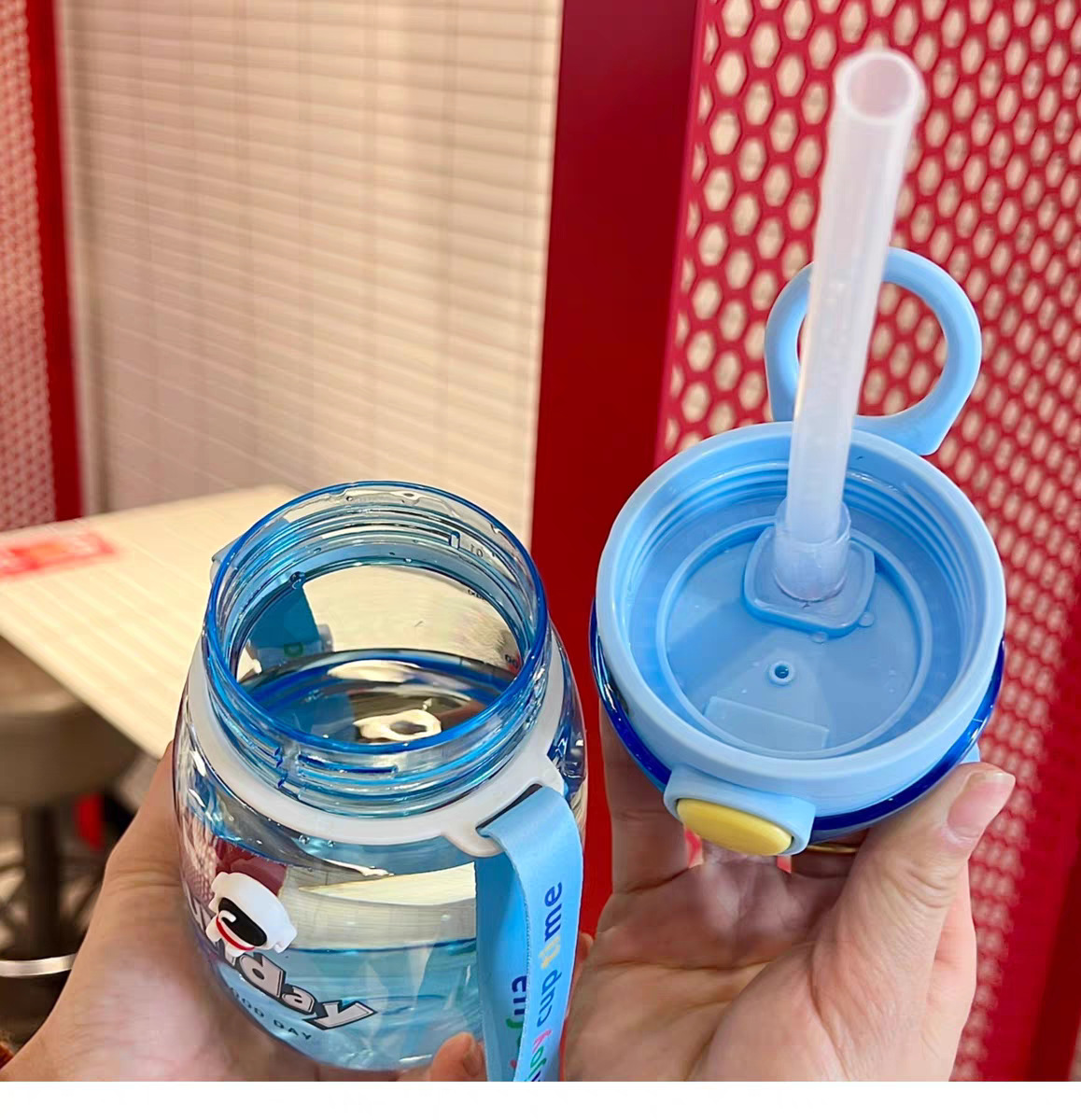 어린이 밀짚 물 컵 여자 높은 찾고 귀여운 컵 아기 주전자 초등학교 학생 학교 유치원 플라스틱 컵스토어 가기