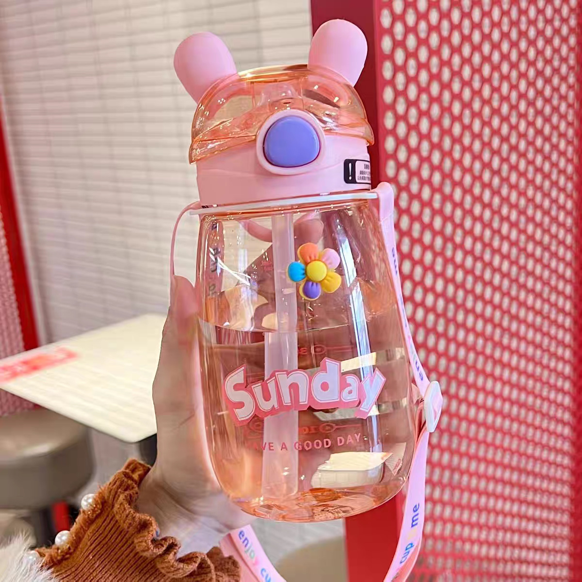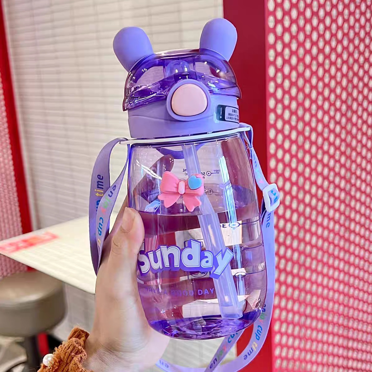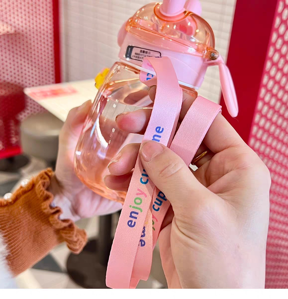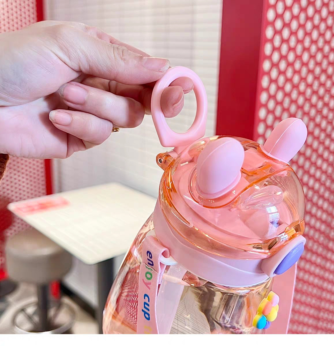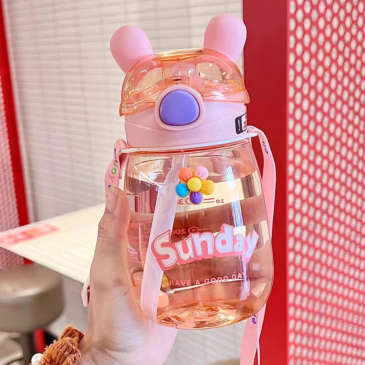 어린이 밀짚 물 컵 여자 높은 찾고 귀여운 컵 아기 주전자 초등학교 학생 학교 유치원 플라스틱 컵스토어 가기