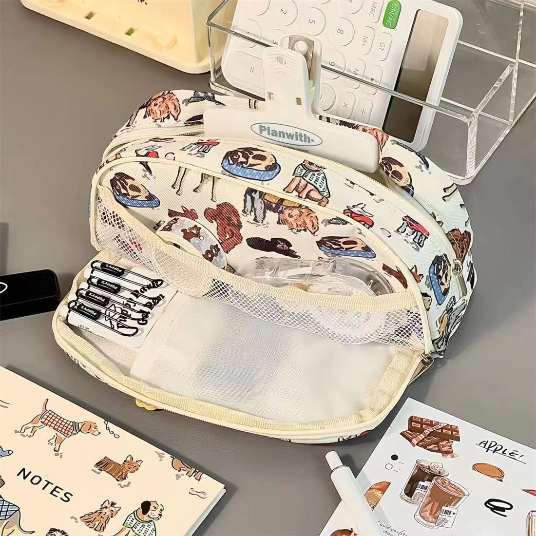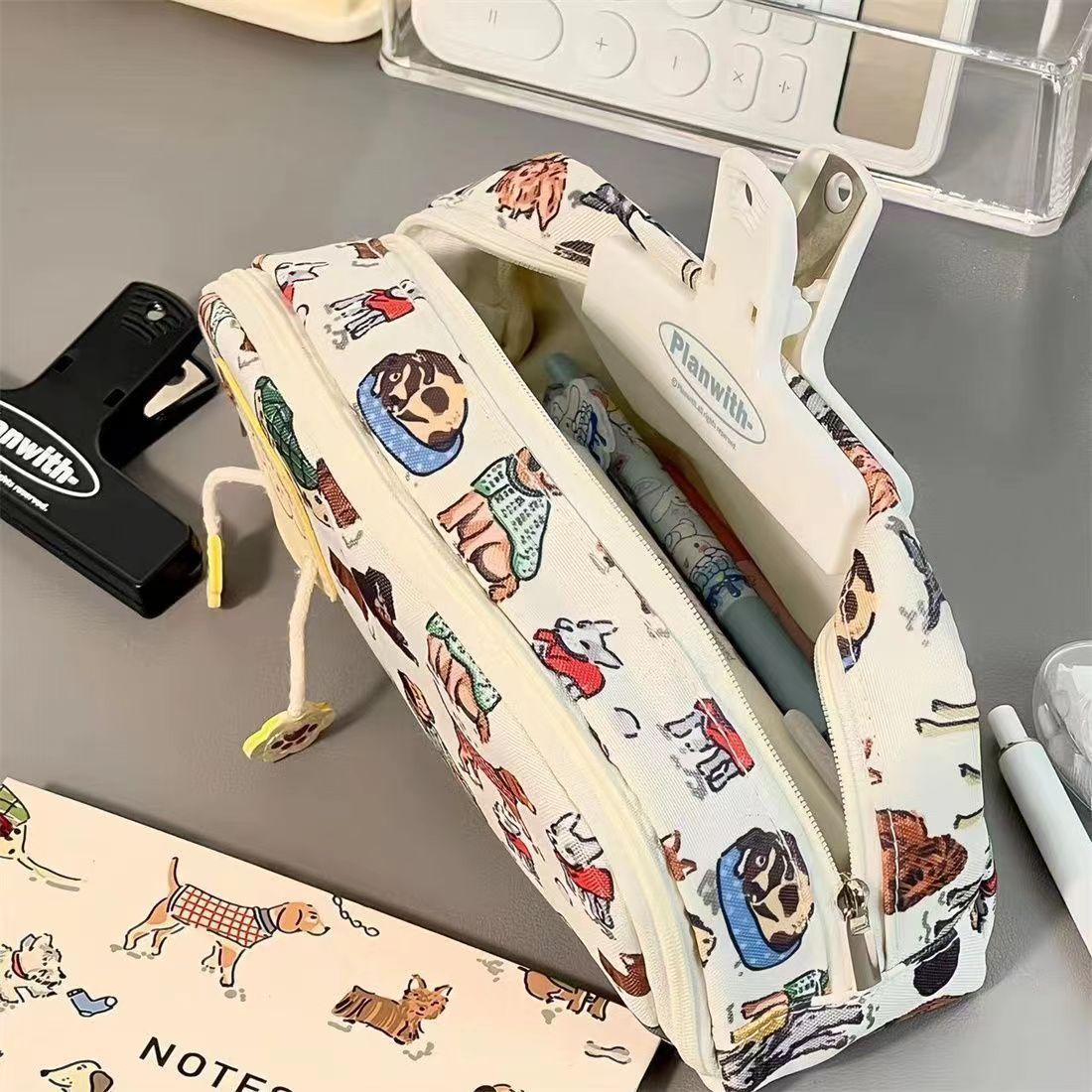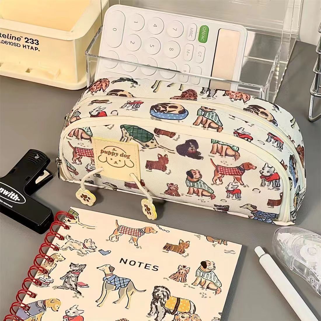Xiaohongshu 같은 복고풍 강아지 인쇄 연필 케이스 높은 찾고 대용량 학생 문구 보관 가방 얼룩 방지스토어 가기