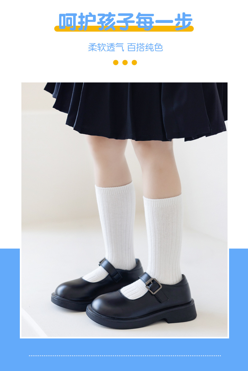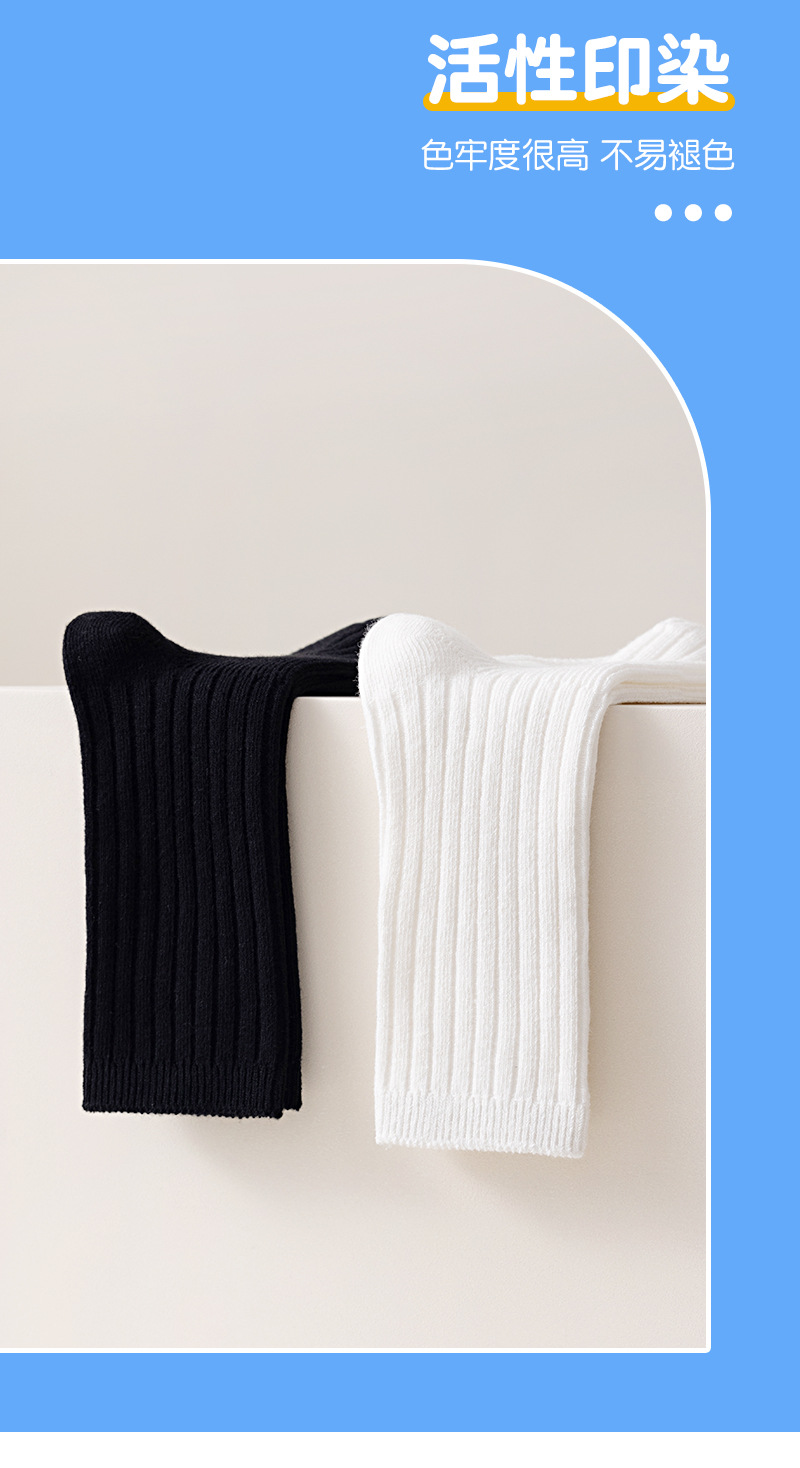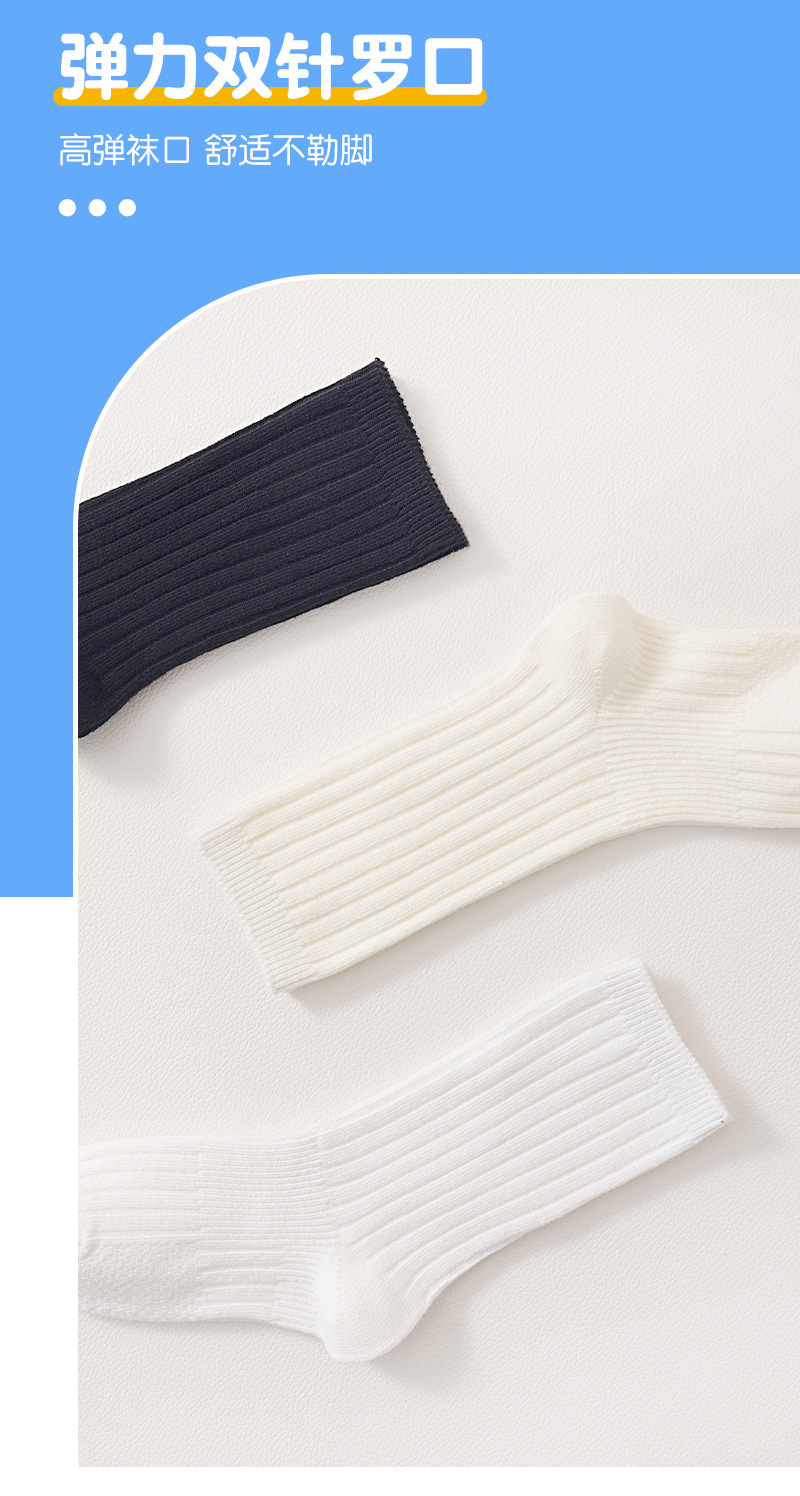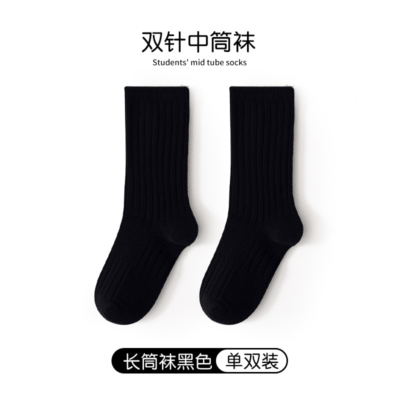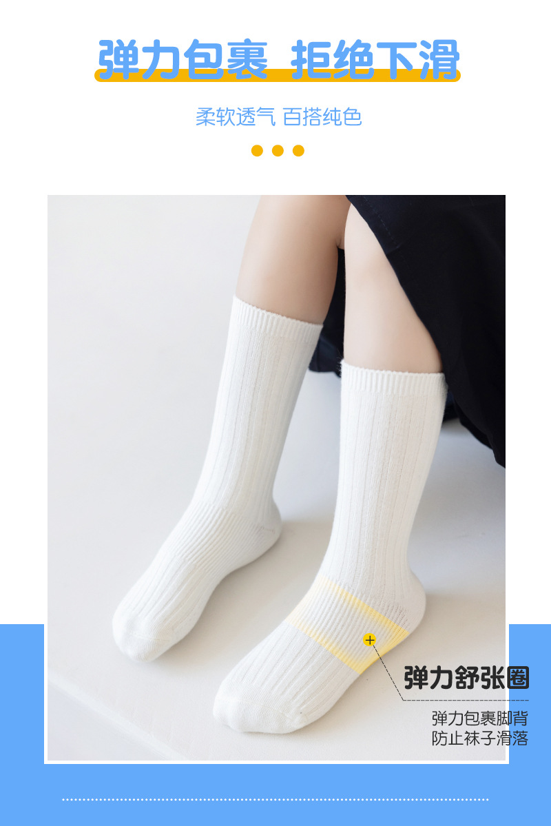 어린이 양말 봄과 가을 빗질면 중간 종아리 길이 양말 소녀 소년 단색 흰색 더블 바늘면 양말 학생 스타킹