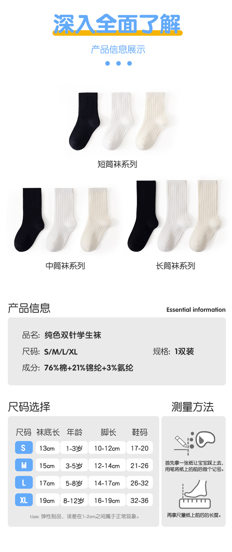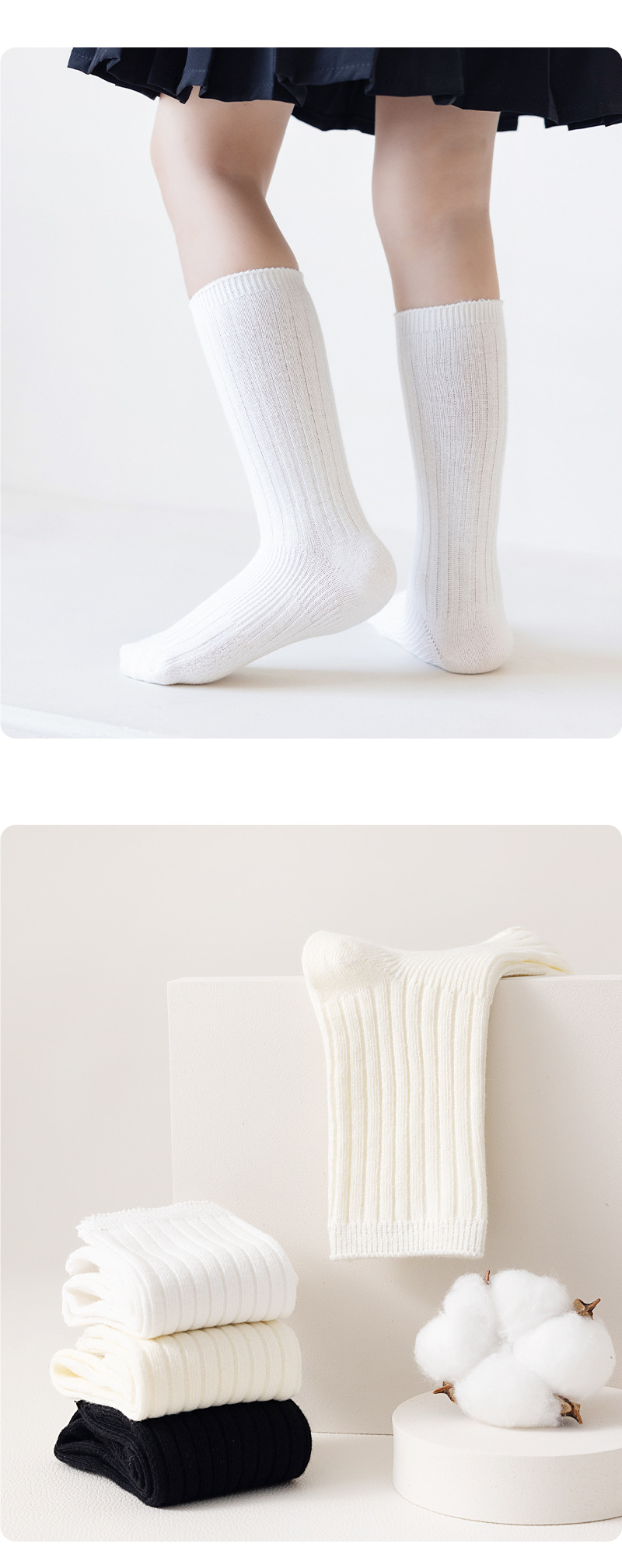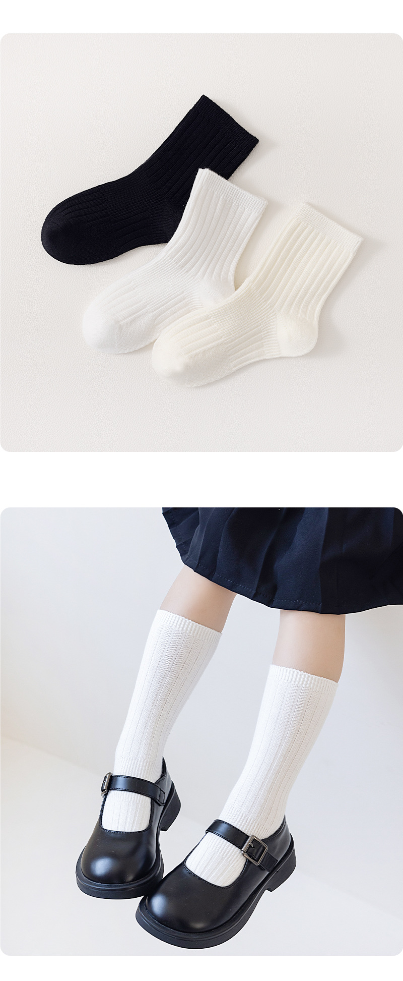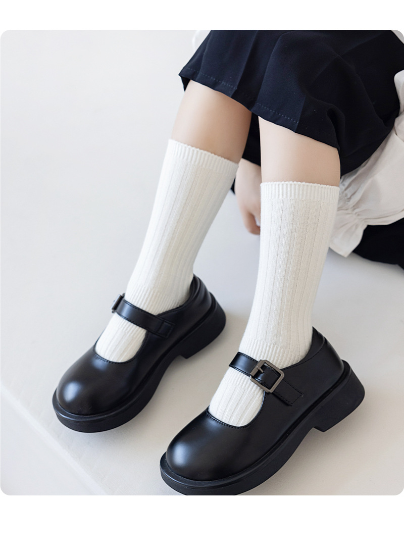 어린이 양말 봄과 가을 빗질면 중간 종아리 길이 양말 소녀 소년 단색 흰색 더블 바늘면 양말 학생 스타킹
