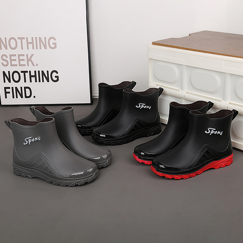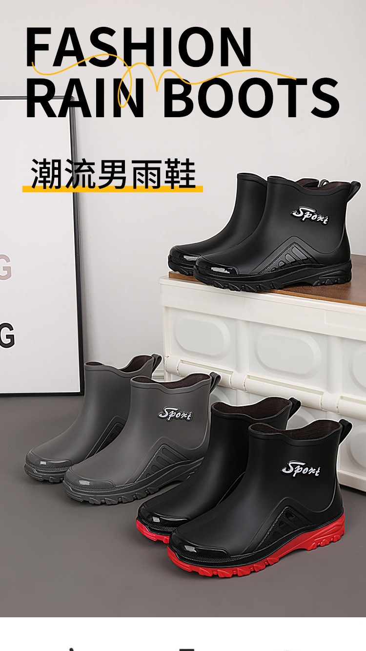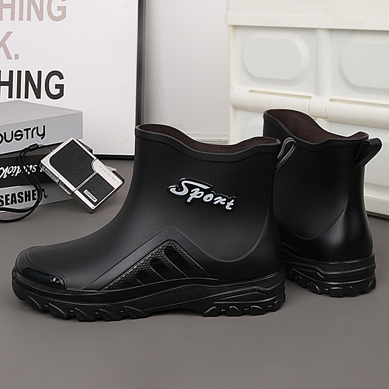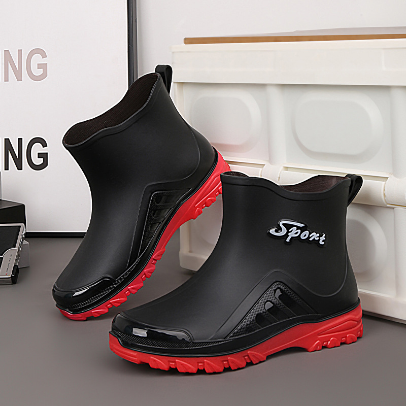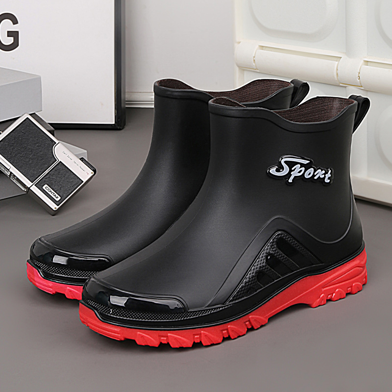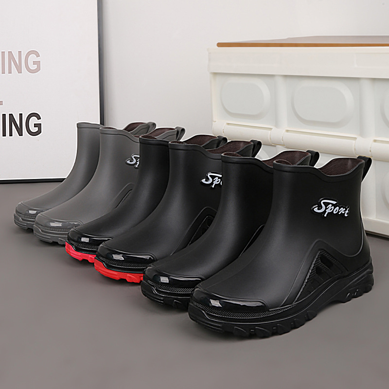 패션 짧은 장화 남성 성인 새 장화 외부 착용 두꺼운 바닥 내마모성 고무 신발 주방 미끄럼 방지 로우 탑 방수 신발