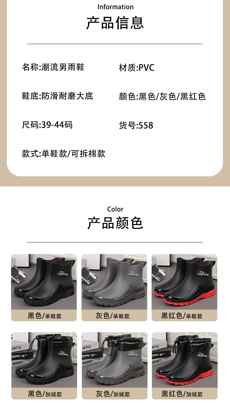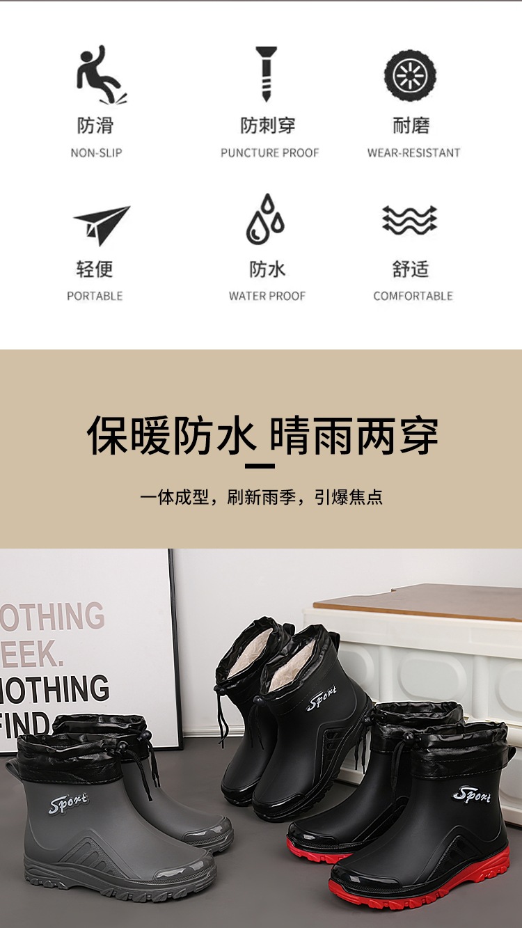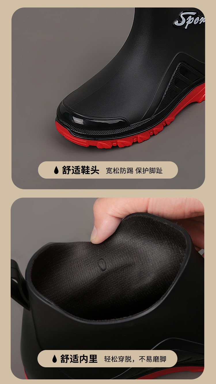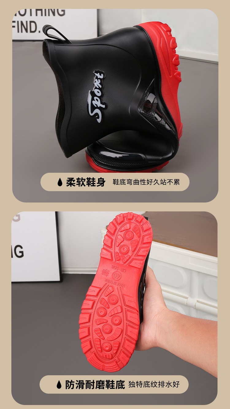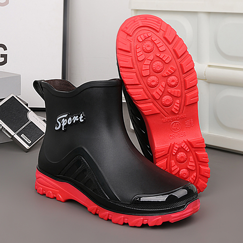 패션 짧은 장화 남성 성인 새 장화 외부 착용 두꺼운 바닥 내마모성 고무 신발 주방 미끄럼 방지 로우 탑 방수 신발