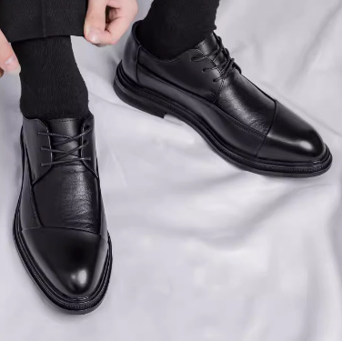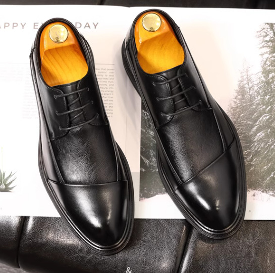 남성용 한국식 세련된 영국식 올 매치 레이스 업 비즈니스 공식 착용 통기성 캐주얼 엘리베이터 웨딩 신랑 신발스토어 가기