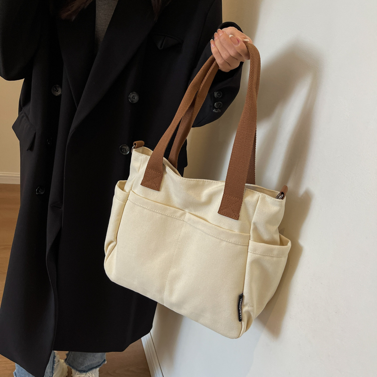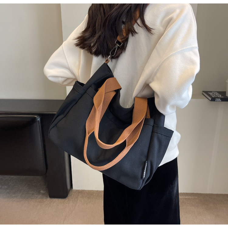 유행 간단한 단색 캔버스 가방 새로운 대학생 어깨 메신저 가방 여성의 캐주얼 올 매치 숄더 토트 백