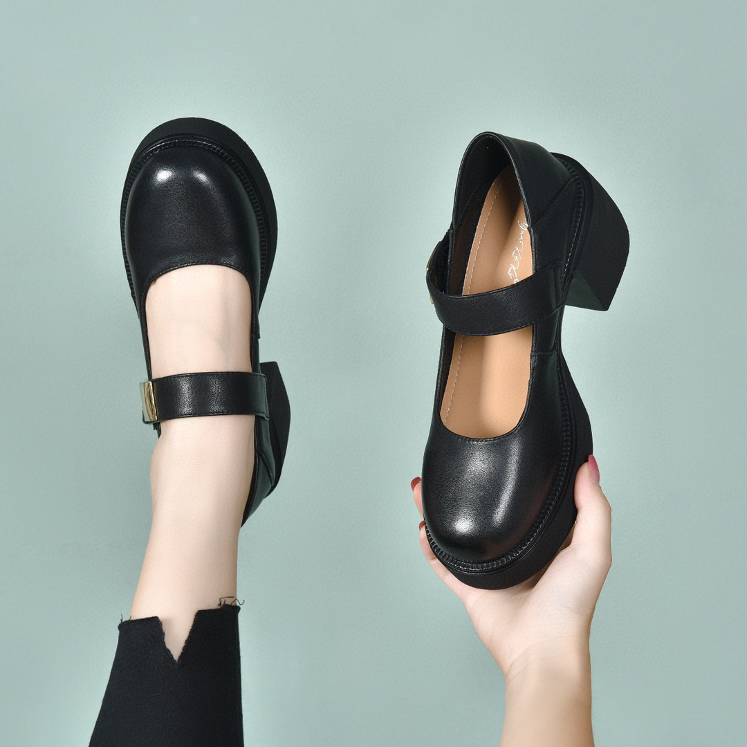 플랫폼 신발 여성 2024 봄 라운드 헤드 버클 메리 제인 사랑 싱글 레이어 Cowhide 플랫폼 힐 여성 신발스토어 가기