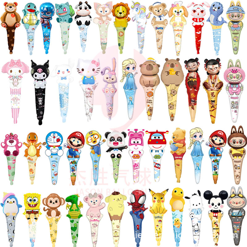 동물 만화 휴대용 스틱 풍선 스틱 스톨 푸시 알루미늄 필름 풍선 어린이 타격 스틱 손 스틱 도매스토어 가기