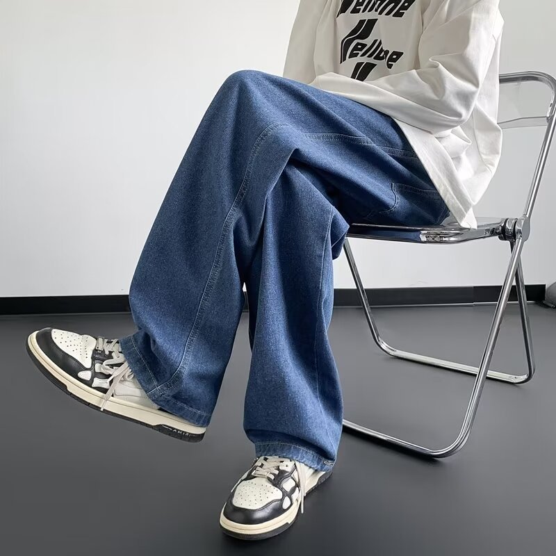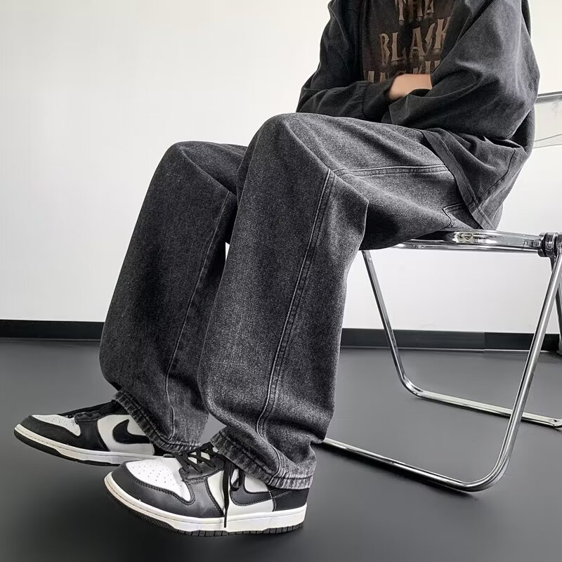 미국식 간단한 빨래 끈 청바지 남성 2024 봄 청소년 패션 브랜드 하이 스트리트 느슨한 스트레이트 바지스토어 가기
