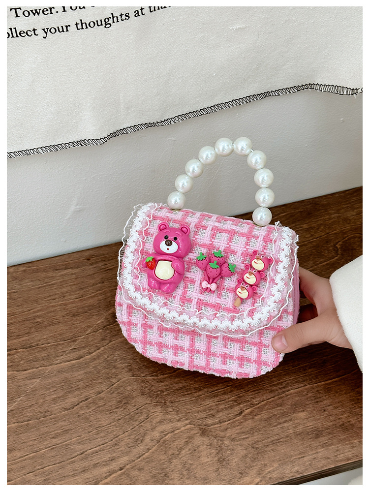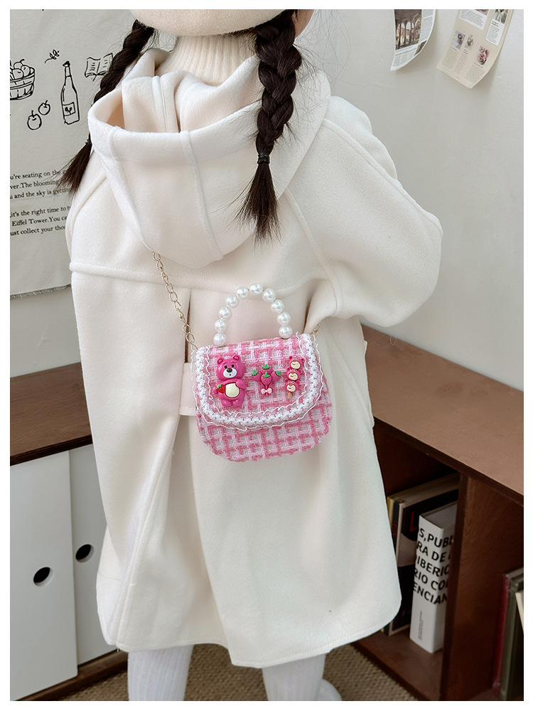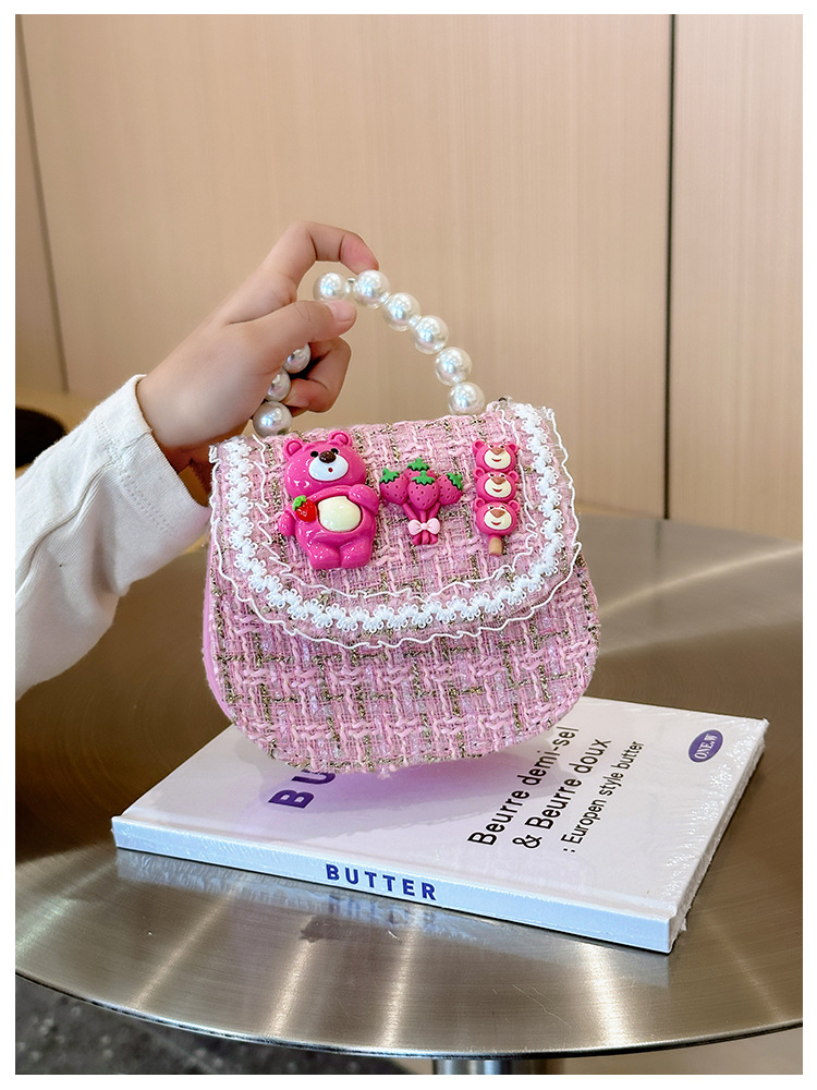 어린이 가방 2024 새로운 만화 귀여운 진주 손 가방 소녀 공주 샤넬 스타일 체인 메신저 가방 대외 무역