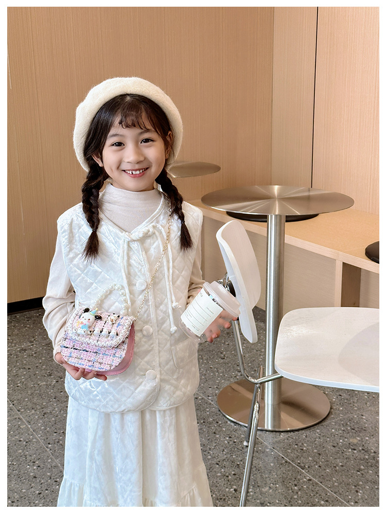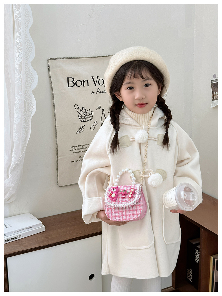 어린이 가방 2024 새로운 만화 귀여운 진주 손 가방 소녀 공주 샤넬 스타일 체인 메신저 가방 대외 무역스토어 가기