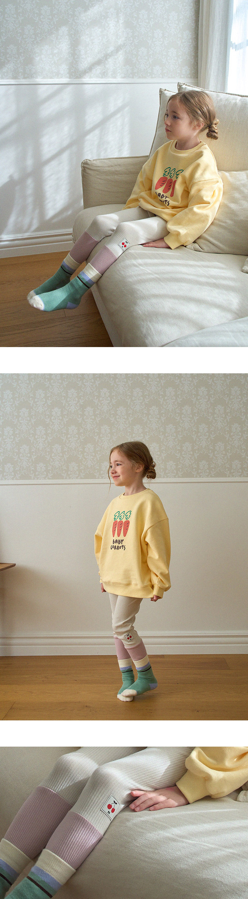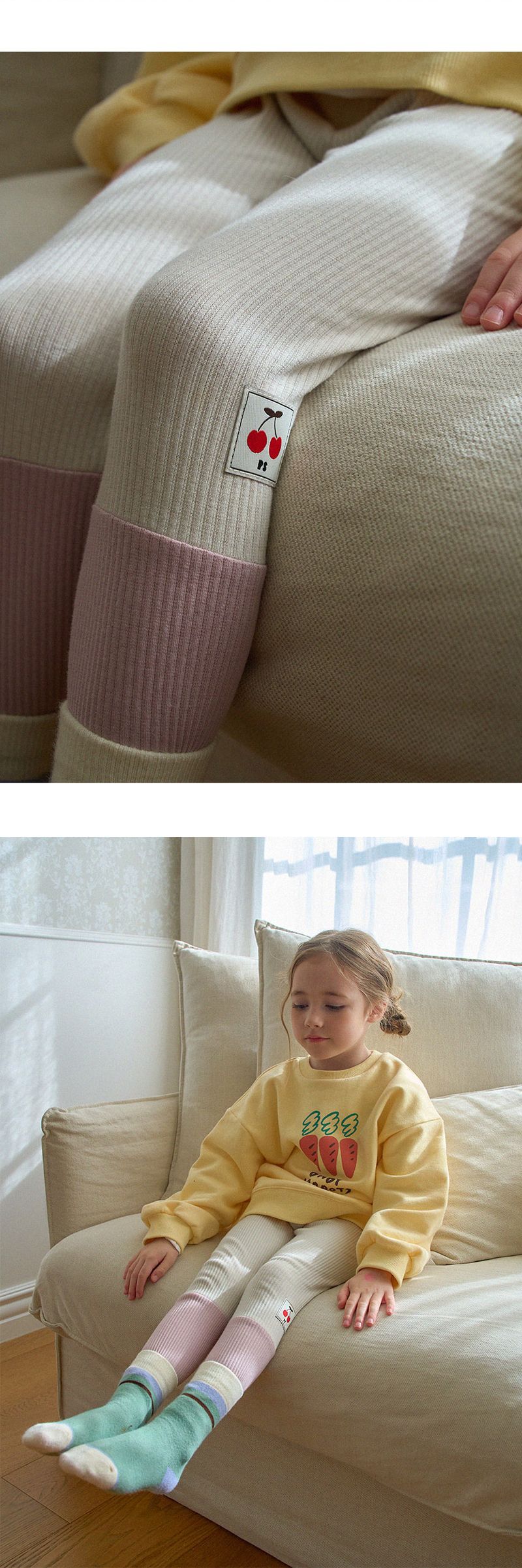 재고 2024 봄 새로운 PS 한국 스타일 어린이 캐주얼 느슨한 패션 의류 소년 소녀 체리 자수 레깅스스토어 가기