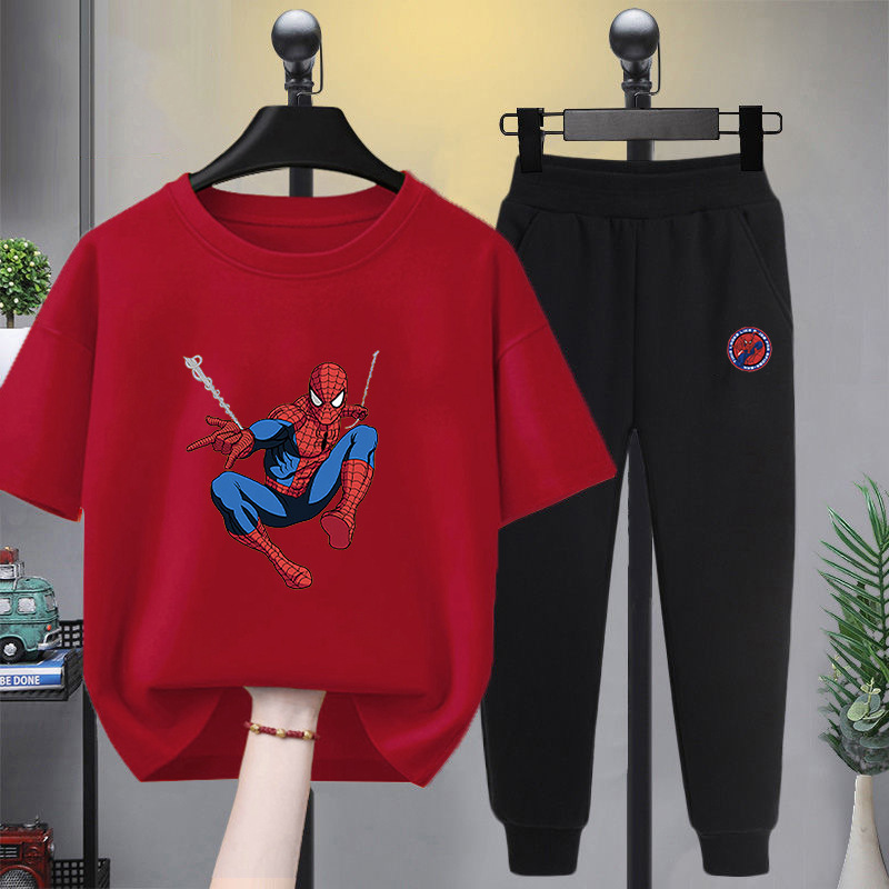 여름 애니메이션 스파이더 맨 만화 느슨한 레저 스포츠 새로운 소년 소녀 세트 2024 두 조각 세트스토어 가기