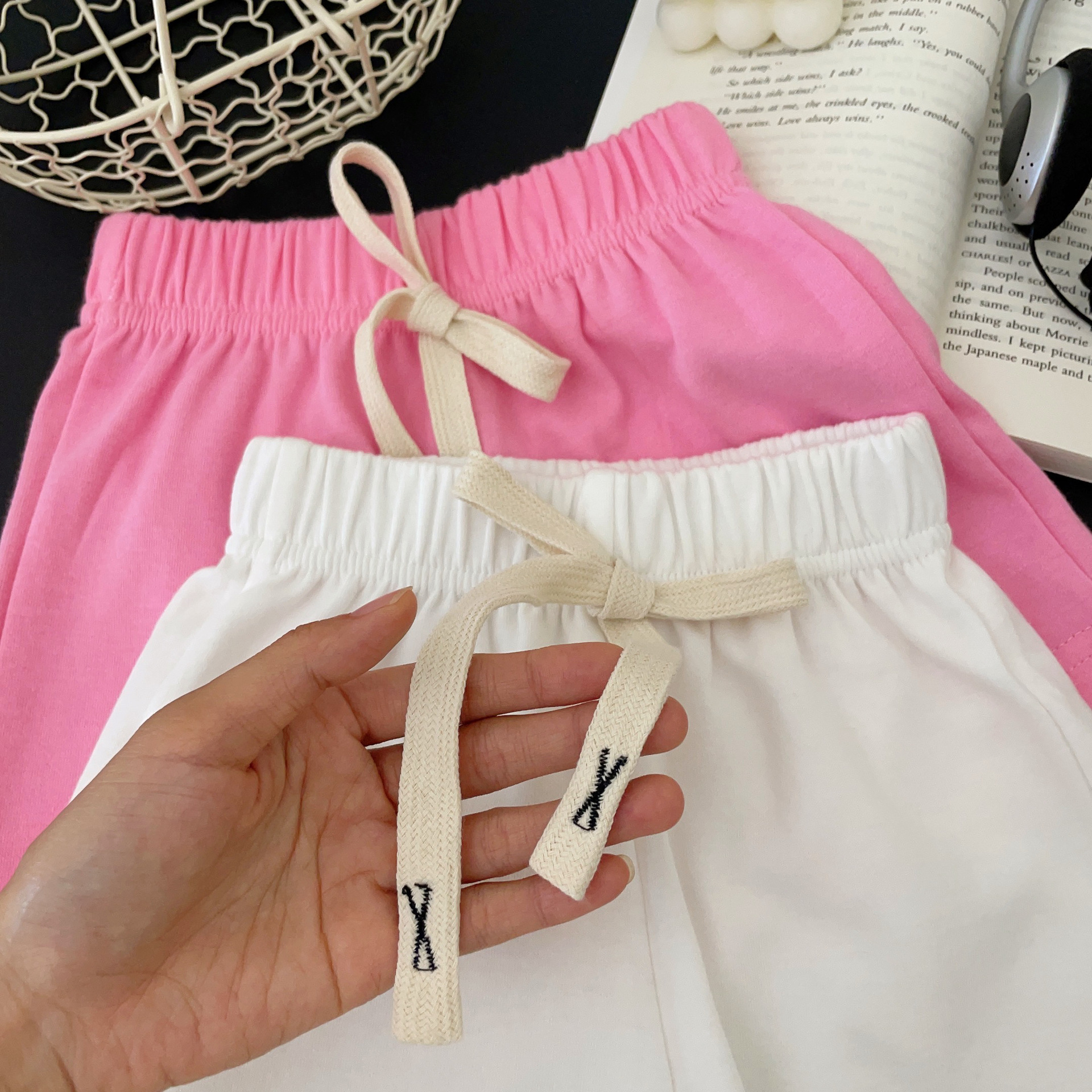 여름 순면 한국 스타일 레터링 세트, 세련된 반팔 반바지 세트, 재고 있음