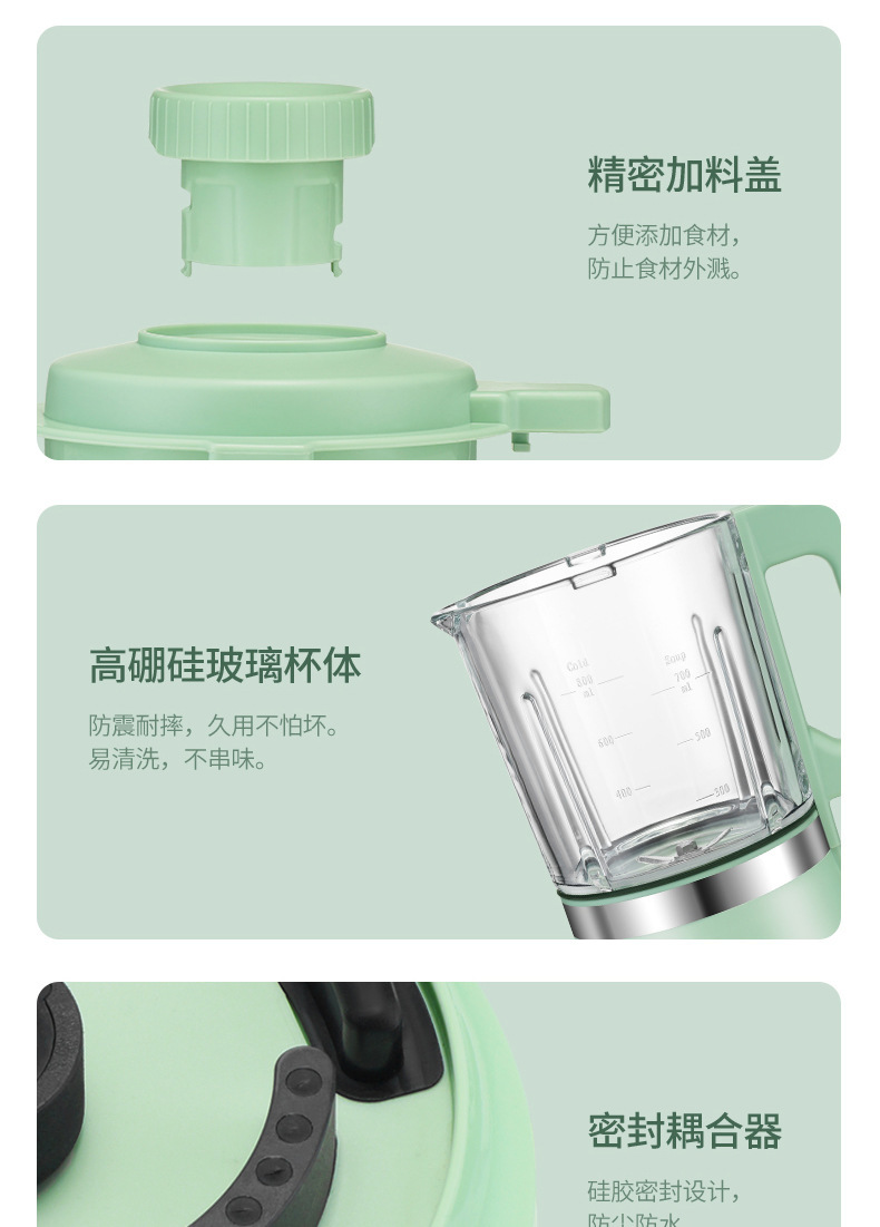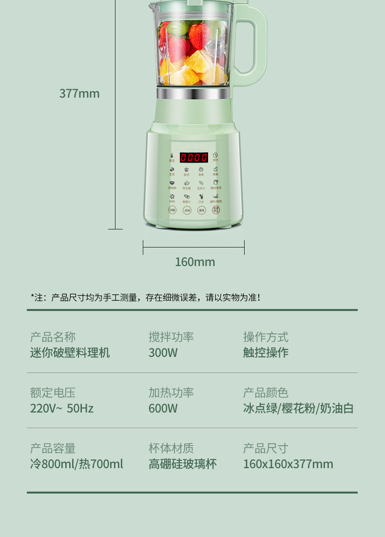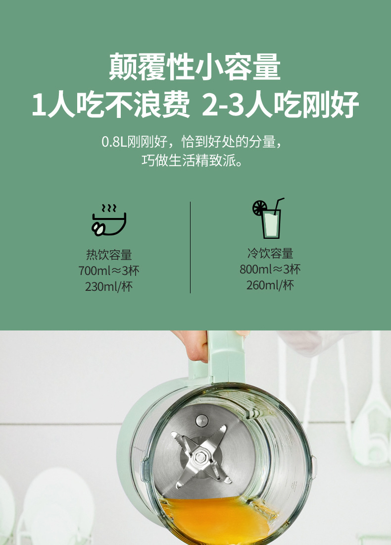 热饮0.7L、冷饮打果汁0.8L、高硼硅玻璃搅拌杯可分拆使用和清洗。110V英文版兼容100-125V 50-60Hz电压;220V兼容220-240V 50-60Hz电压。